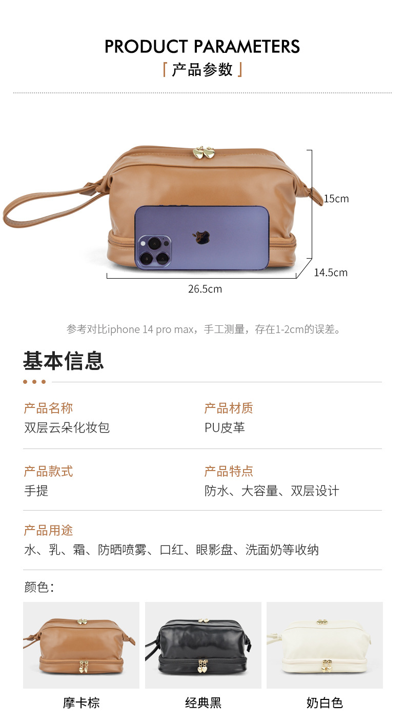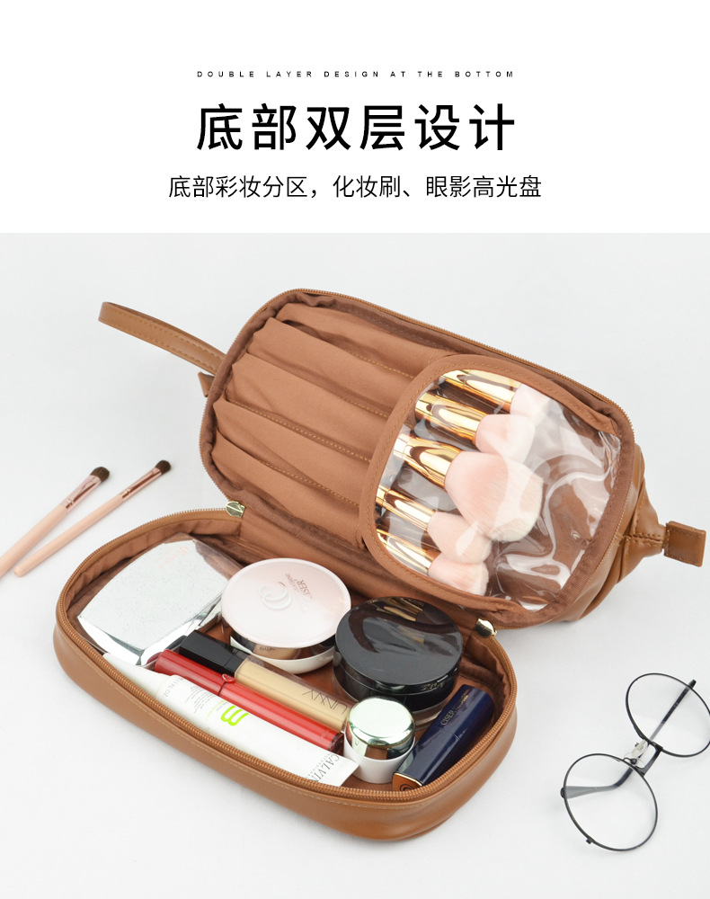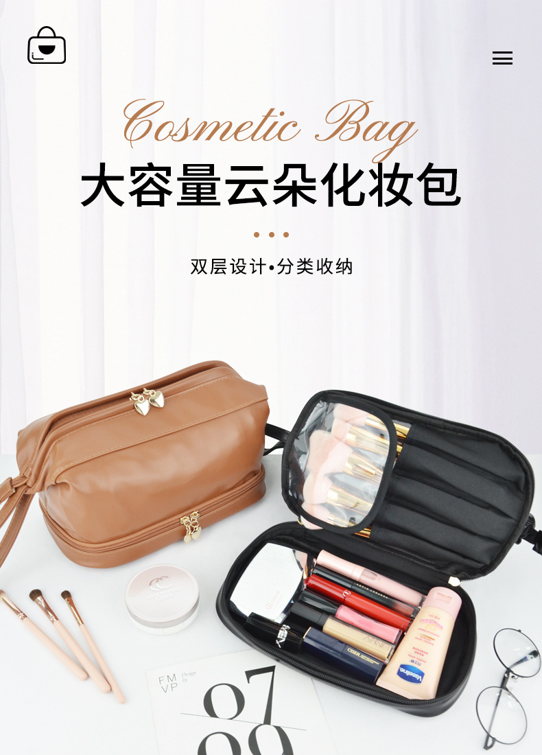 더블 레이어 클라우드 화장품 가방 휴대용 휴대용 높은 가치 화장품 가방 계층화 된 대용량 방수 화장실 가방