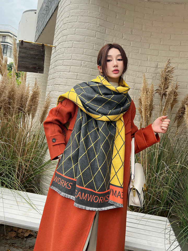 菱形几何围巾女韩版冬季新款仿羊绒百搭保暖格子披肩学生字母围脖