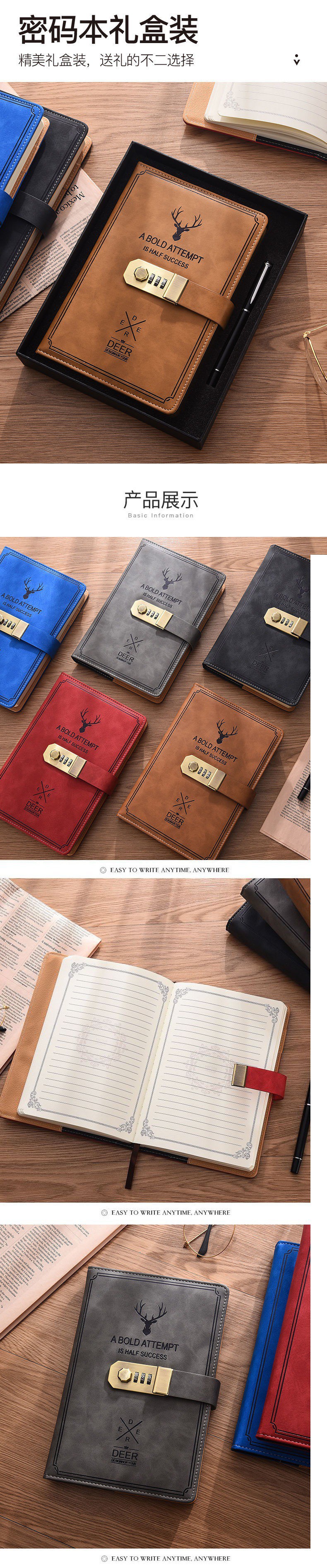 잠금 두꺼운 크리 에이 티브 핸드 계정 책 학생 메모장 편지지 노트북이있는 A5 레트로 암호 저널스토어 가기