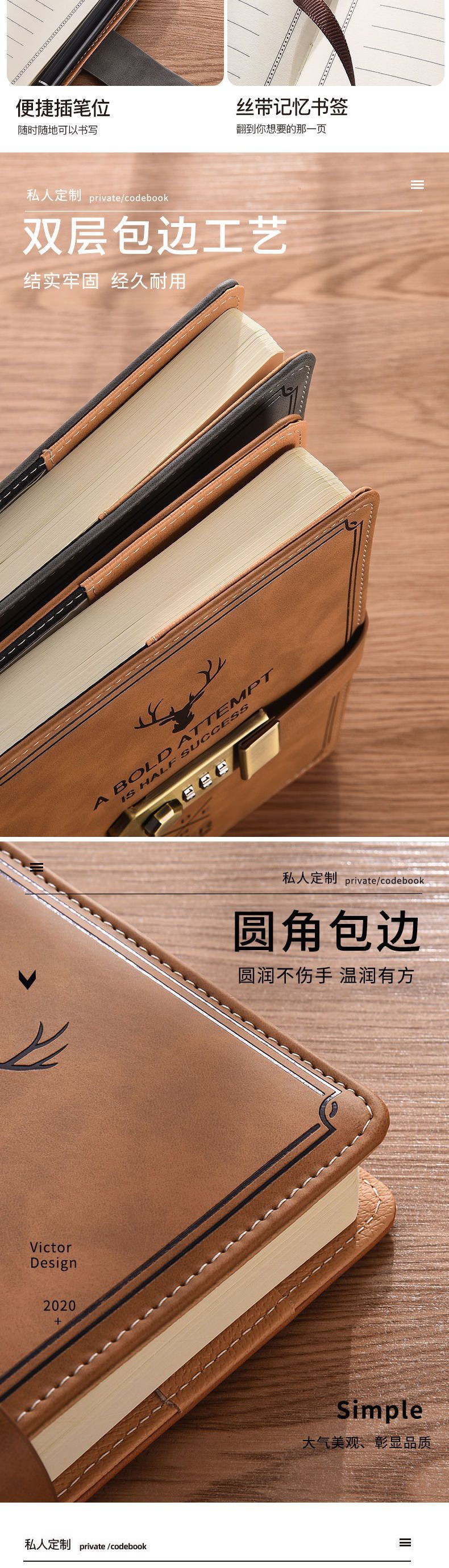 잠금 두꺼운 크리 에이 티브 핸드 계정 책 학생 메모장 편지지 노트북이있는 A5 레트로 암호 저널