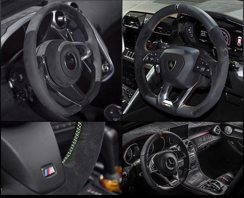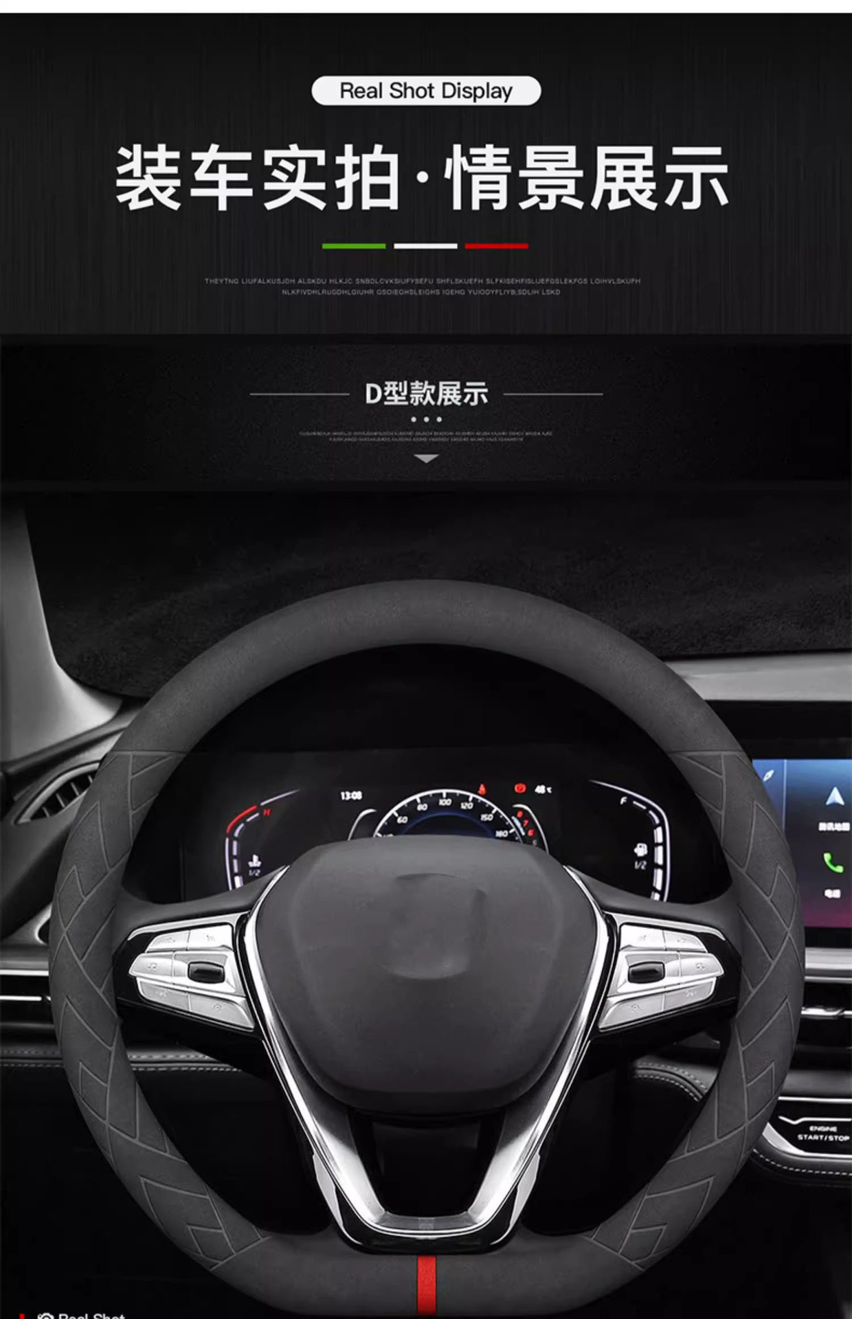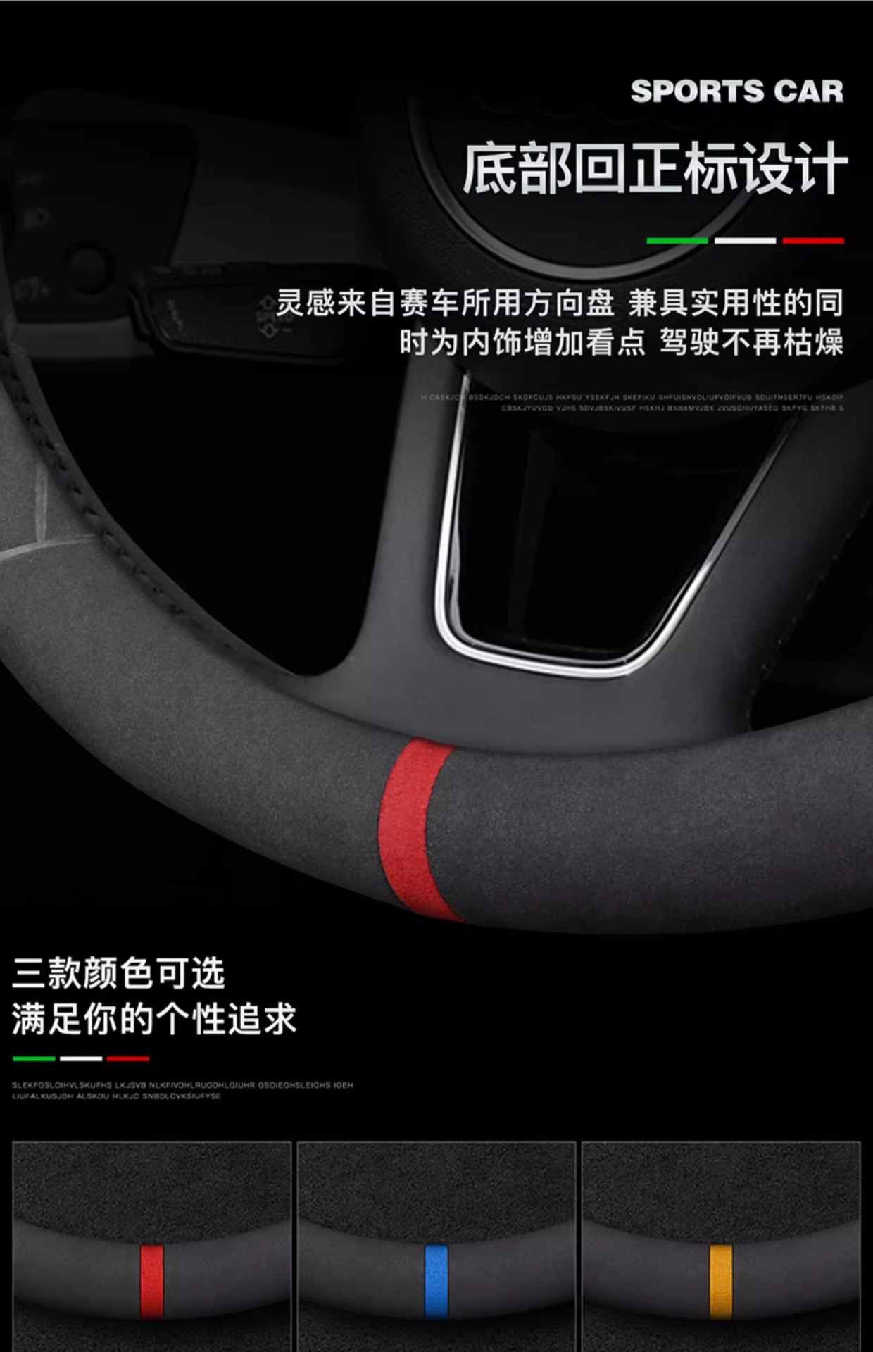 적용 가능한 자동차 핸들 커버 아우디 BMW 메르세데스-벤츠 스웨이드 사계절 범용 미끄럼 방지 땀 흡수 커버 겨울 크로스 보더