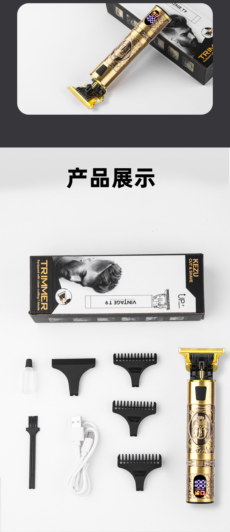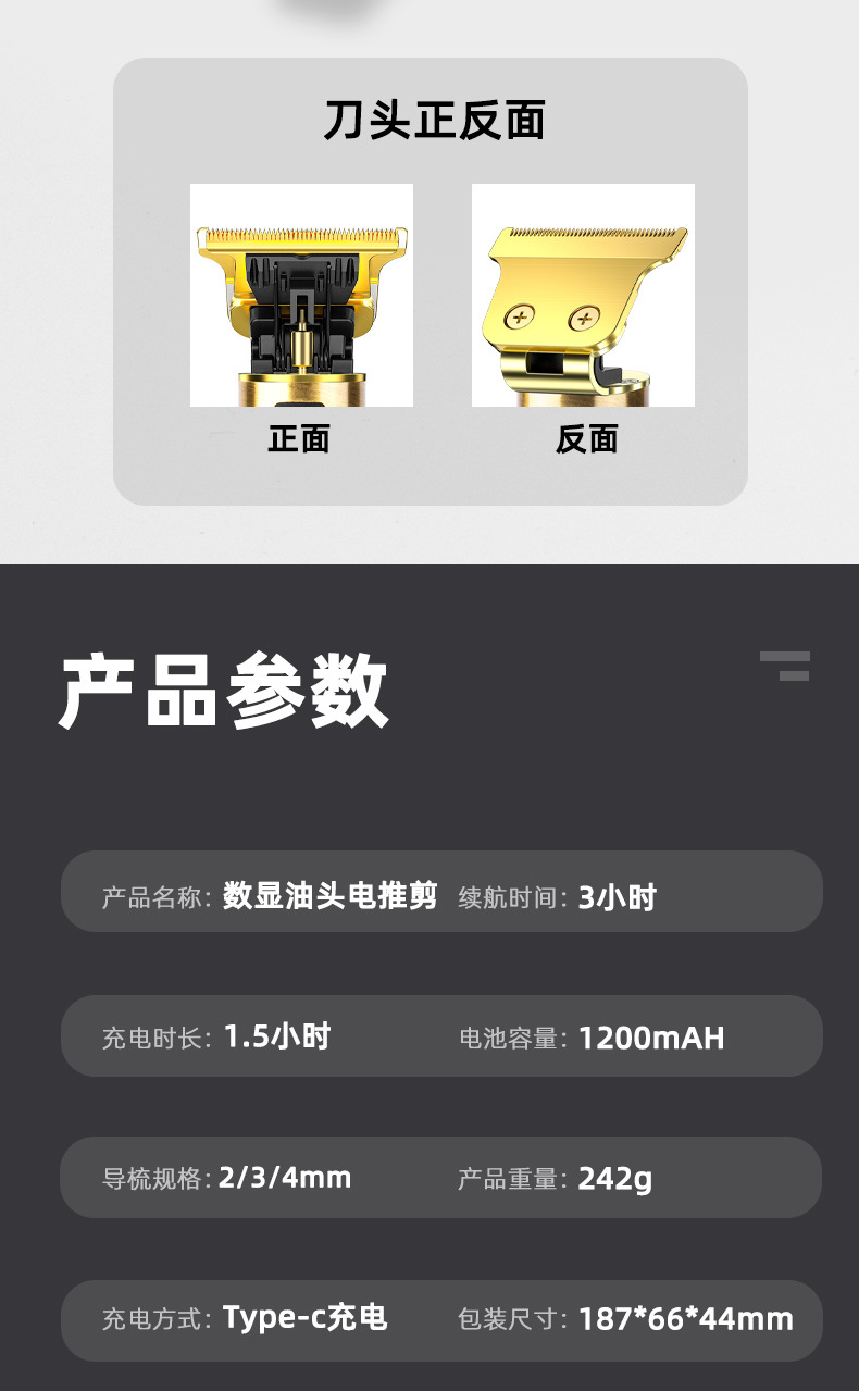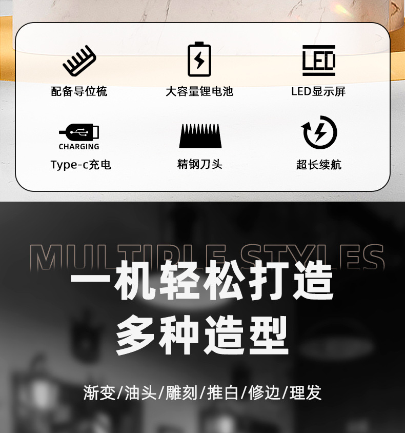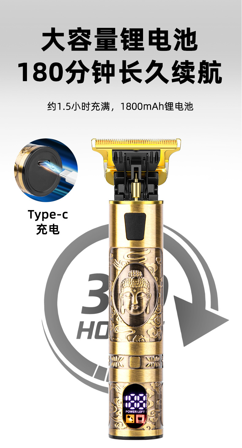 공장 직판 이발기 전기 클리퍼 조각용 클리퍼 알루미늄 합금 미용 가정용 전기 클리퍼 충전식 디지털 디스플레이 포함스토어 가기