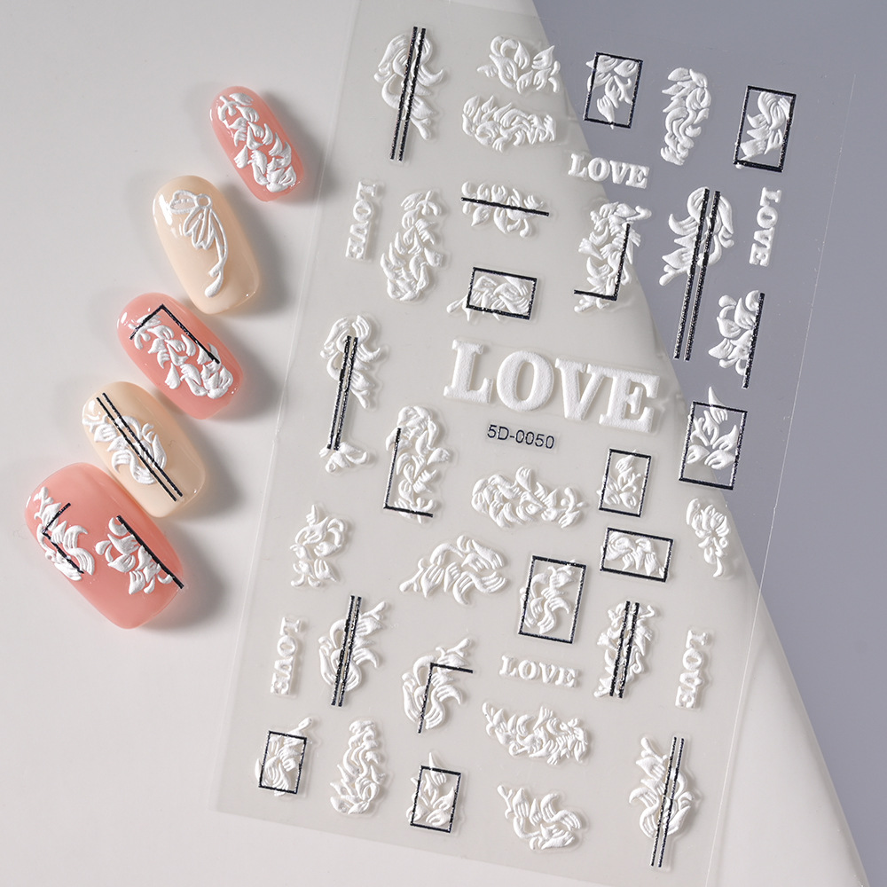 양각 5D 스티커 동백 네일 아트 장식 스타일 스테레오 꽃 사랑 편지 5D 양각 네일 아트 스티커