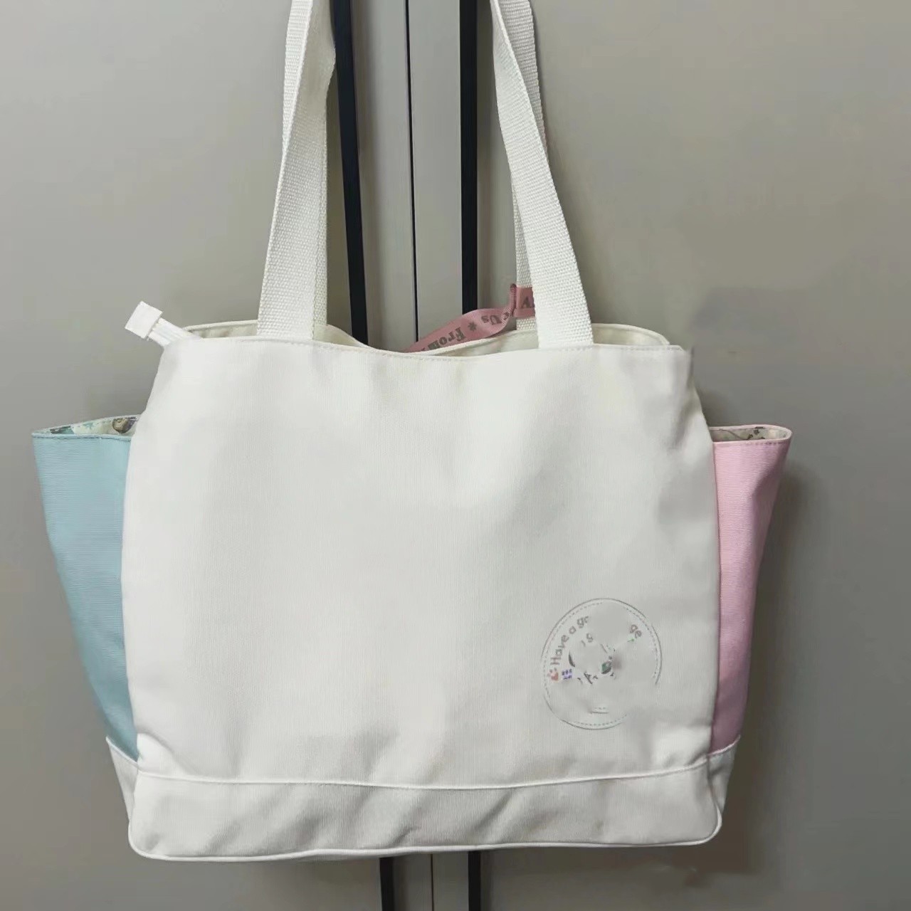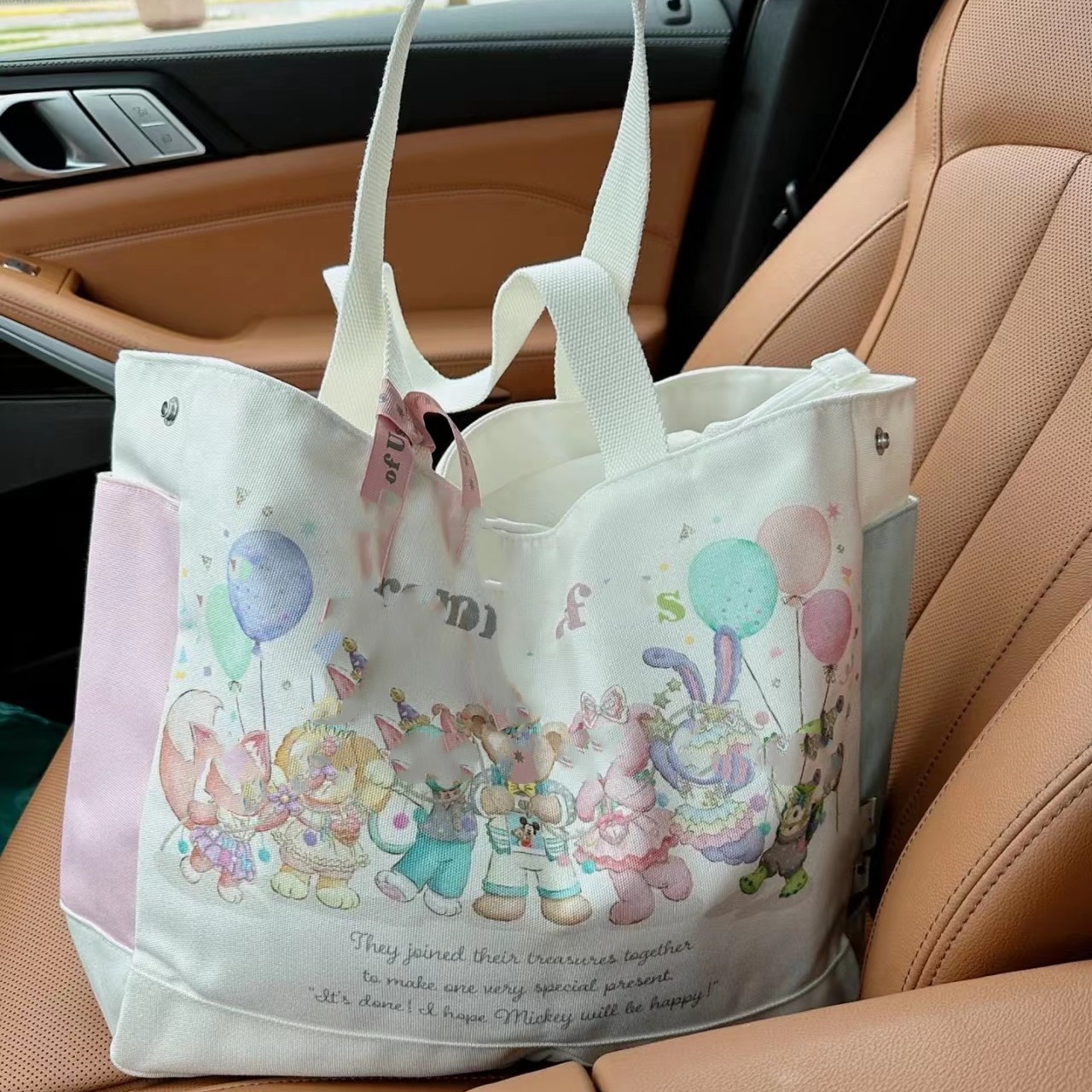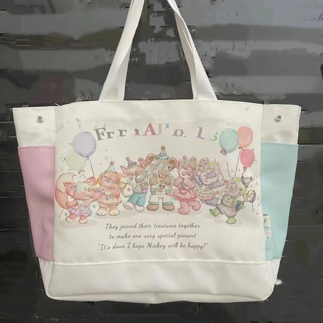 재고 2023 새로운 만화 귀여운 편지 인쇄 캔버스 가방 여성의 대용량 토트 가방 어깨 가방스토어 가기