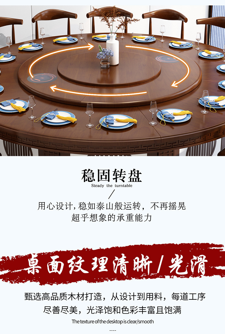 호텔 식탁 대형 원형 테이블 전기 턴테이블 원형 테이블 15-20 인 호텔 상업용 회전 연회 중국 원형 테이블스토어 가기