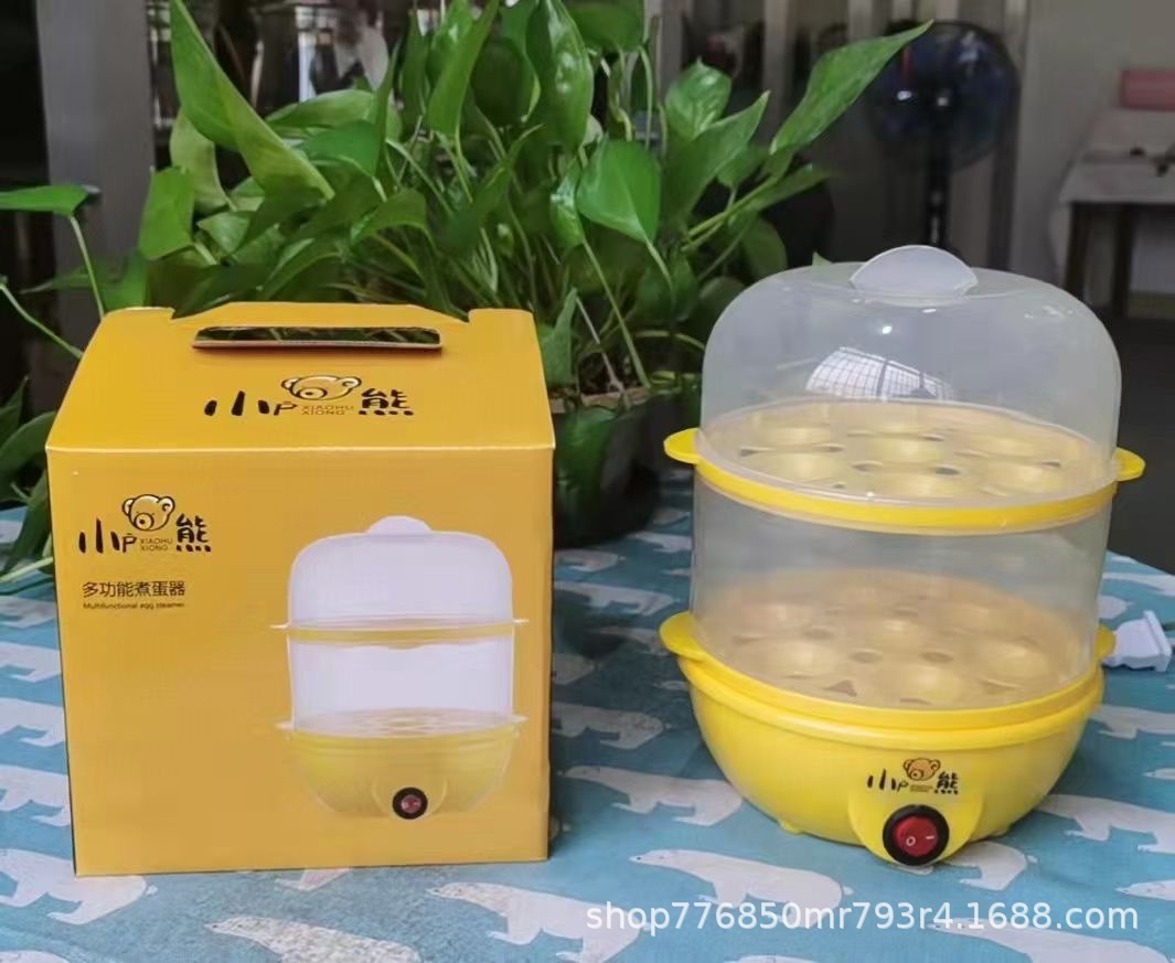 작은 가정용 곰 도매 미니 계란 보일러 싱글 더블 레이어 투명 커버 대용량 계란 증기선 주방 가정용 소형 가전 제품 선물