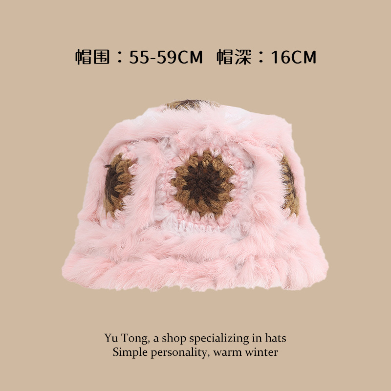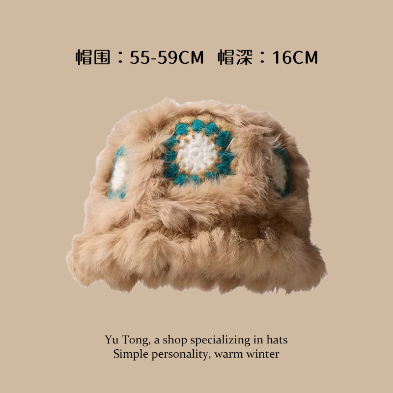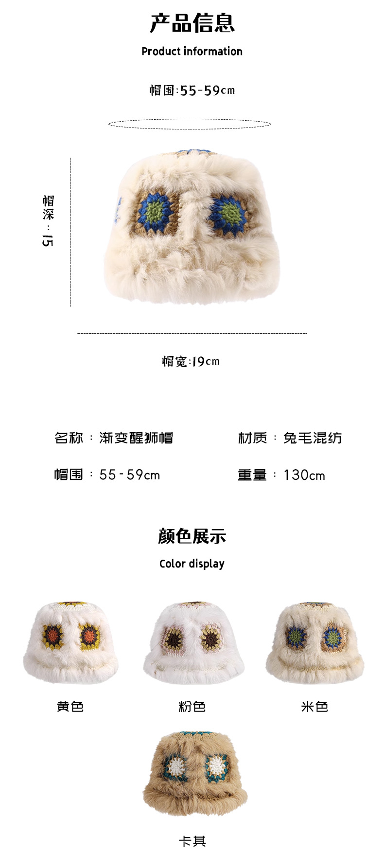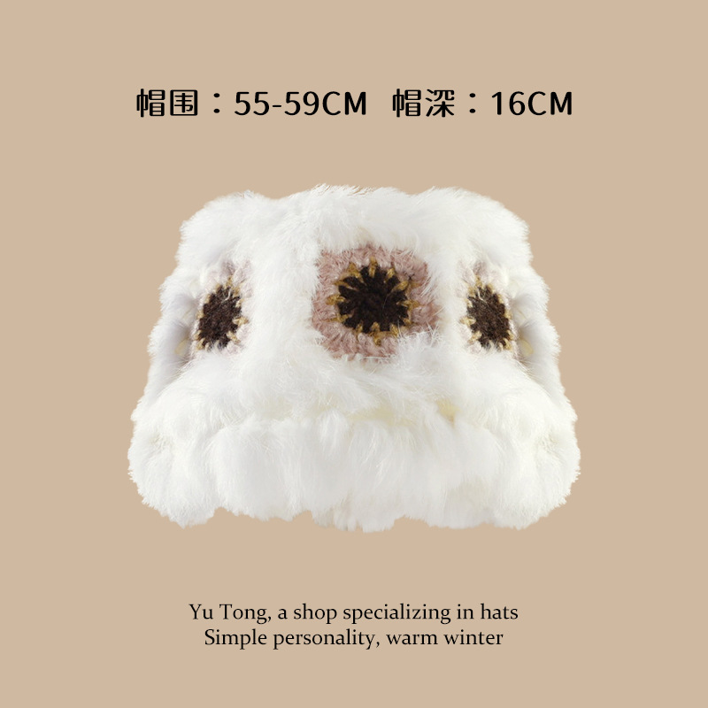 인기 있는 사자 모양 토끼털 버킷햇 여성용 가을 겨울 귀엽고 따뜻한 털모자 다용도 얼굴 작아 보이는 수제 버킷햇