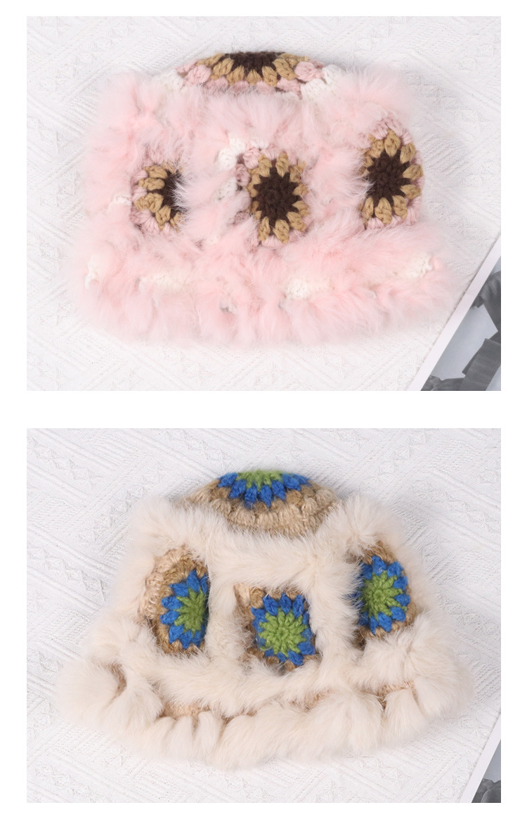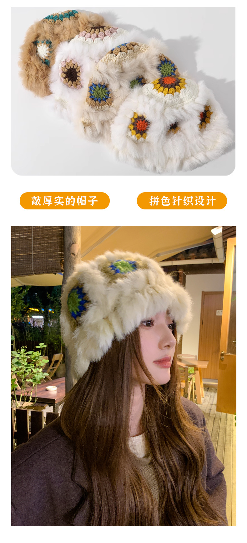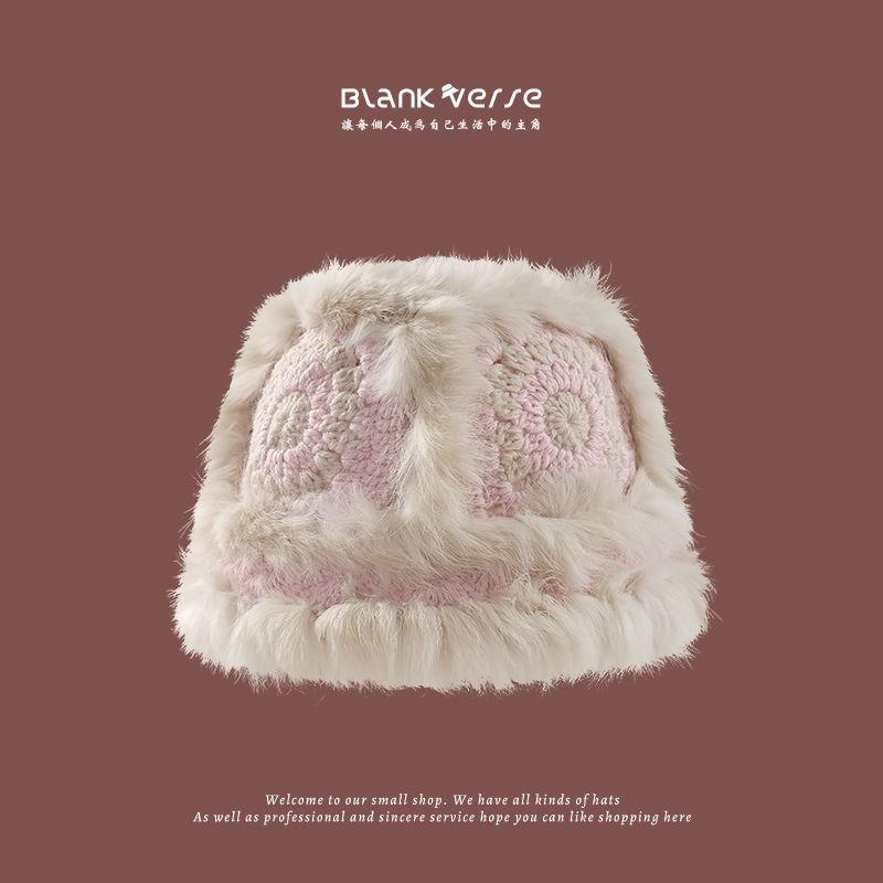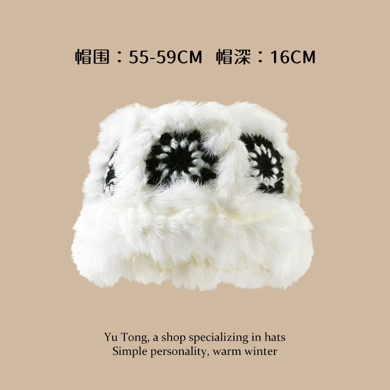 인기 있는 사자 모양 토끼털 버킷햇 여성용 가을 겨울 귀엽고 따뜻한 털모자 다용도 얼굴 작아 보이는 수제 버킷햇