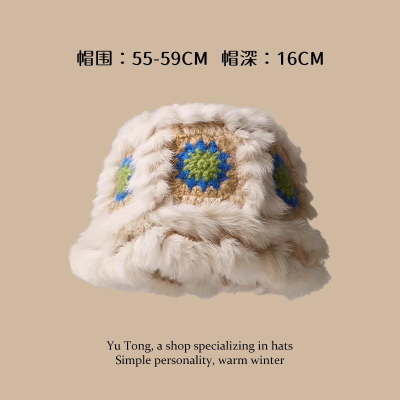 인기 있는 사자 모양 토끼털 버킷햇 여성용 가을 겨울 귀엽고 따뜻한 털모자 다용도 얼굴 작아 보이는 수제 버킷햇스토어 가기