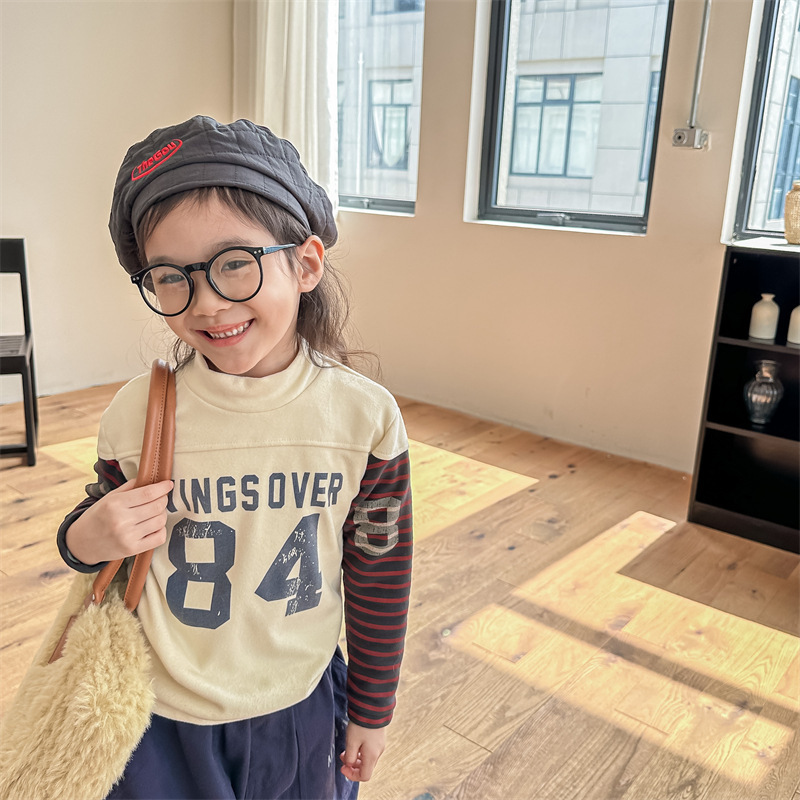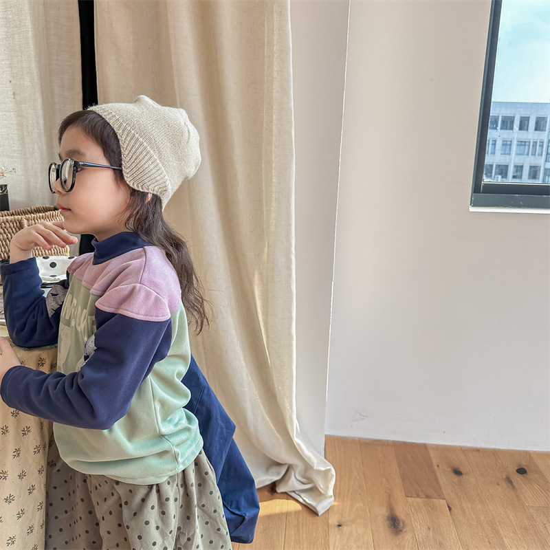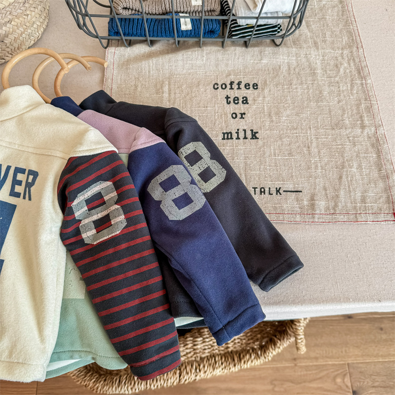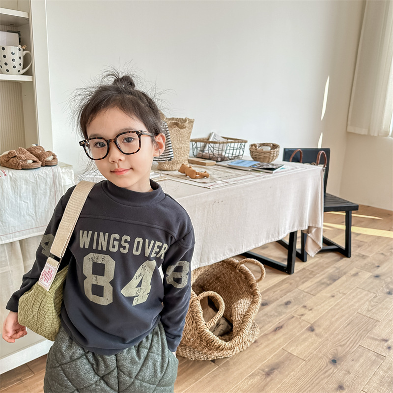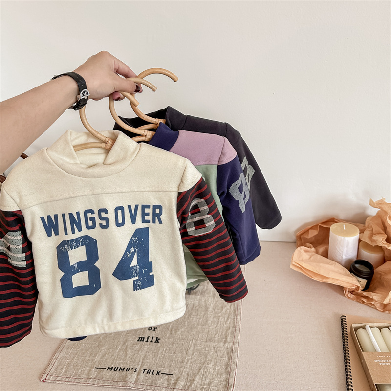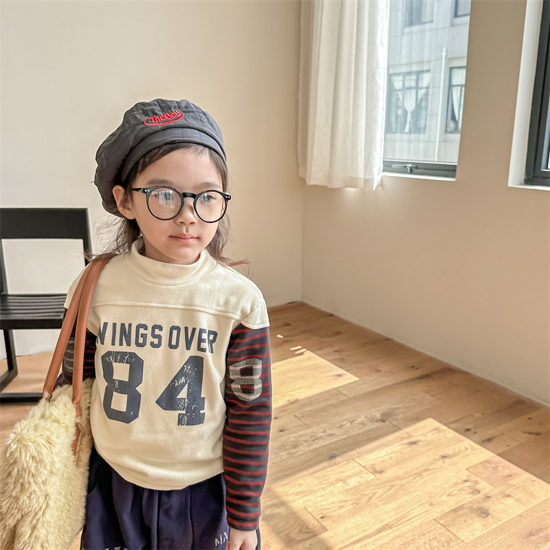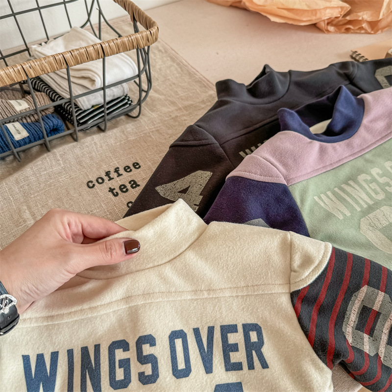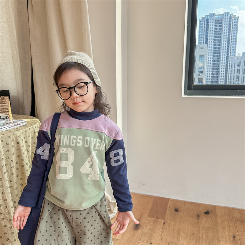 2023 가을과 겨울 어린이 기모 조끼 어린이를위한 한국어 컬러 매칭 문자 세미 하이 칼라 따뜻한 바닥 셔츠 재킷 조수스토어 가기