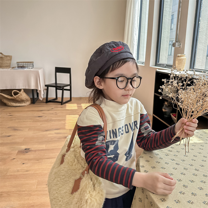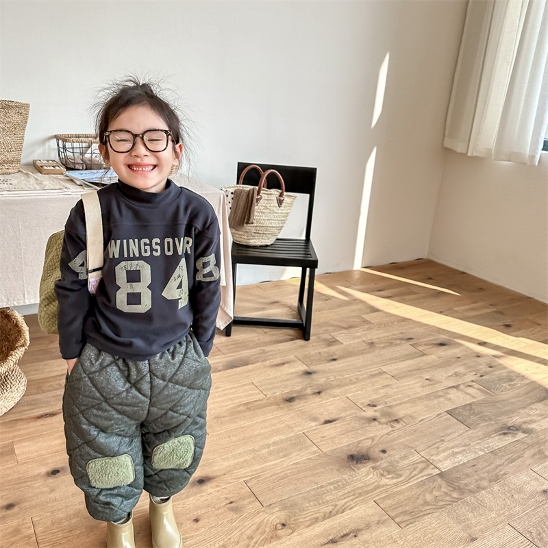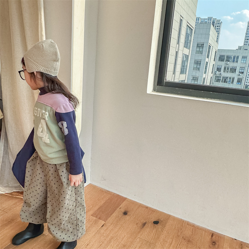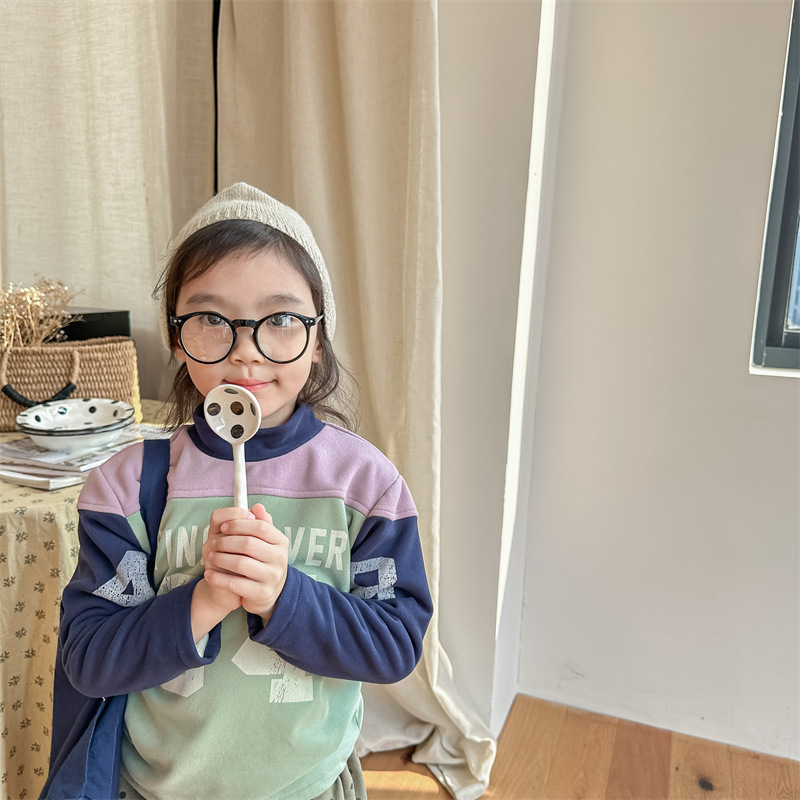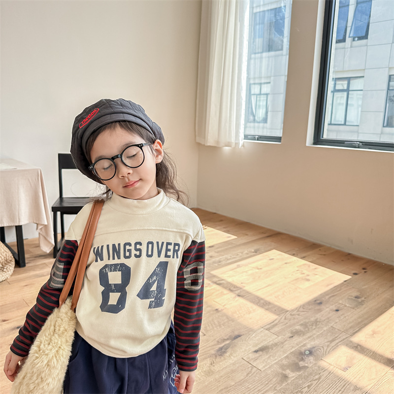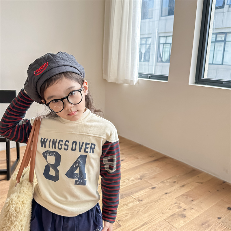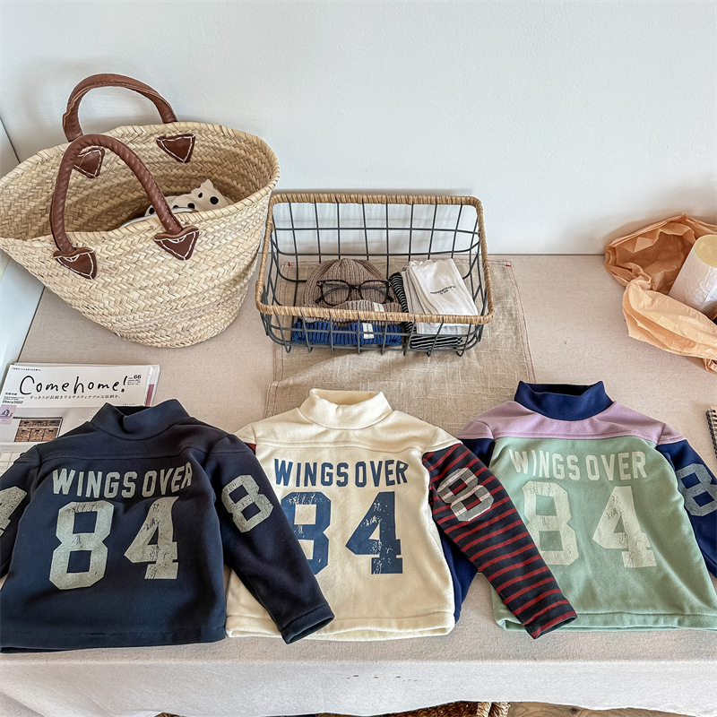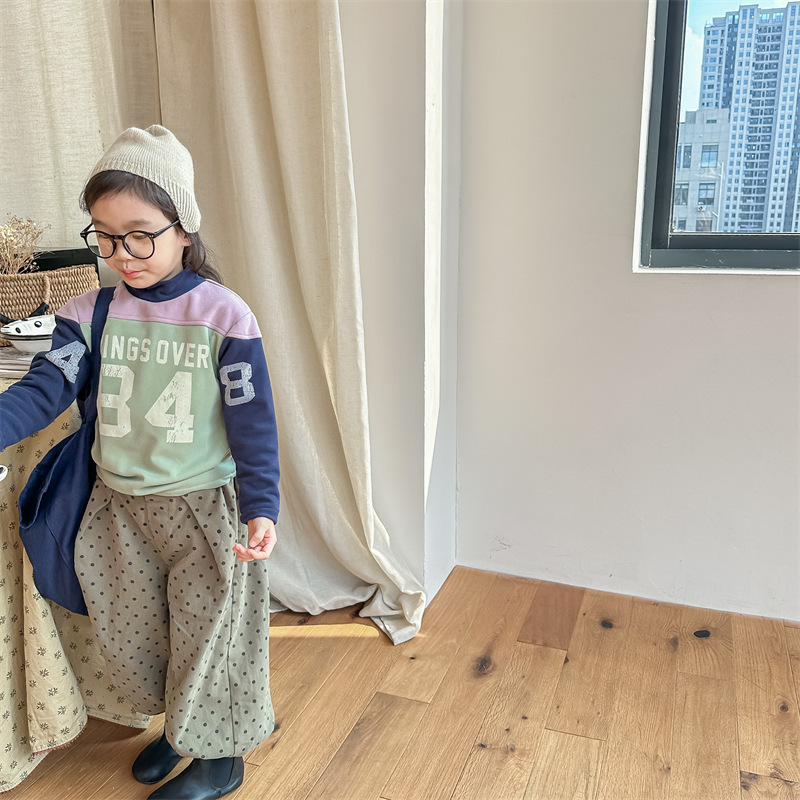 2023 가을과 겨울 어린이 기모 조끼 어린이를위한 한국어 컬러 매칭 문자 세미 하이 칼라 따뜻한 바닥 셔츠 재킷 조수스토어 가기