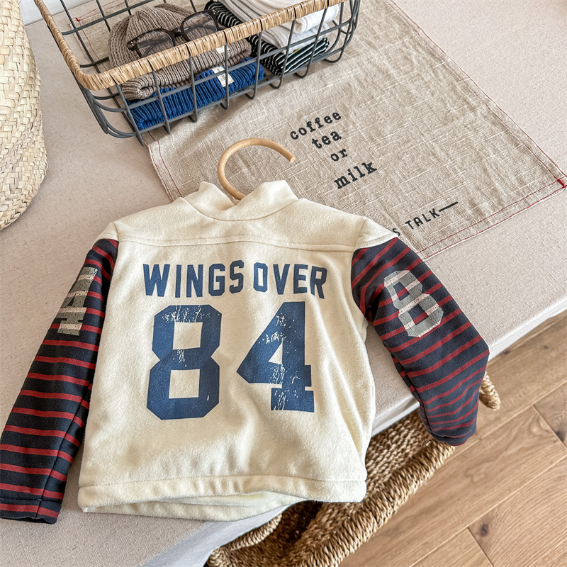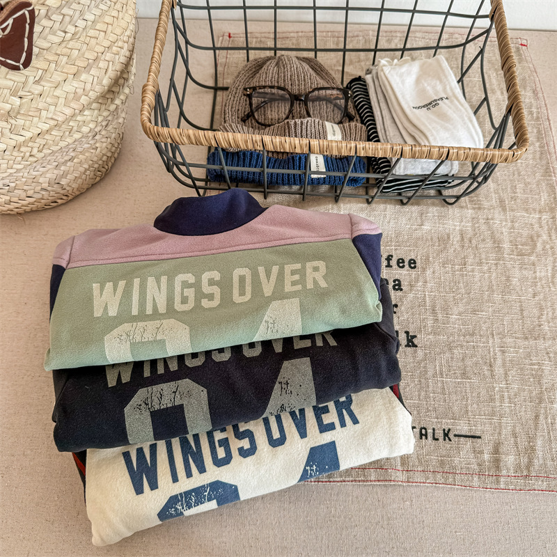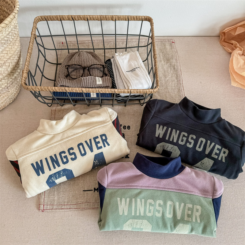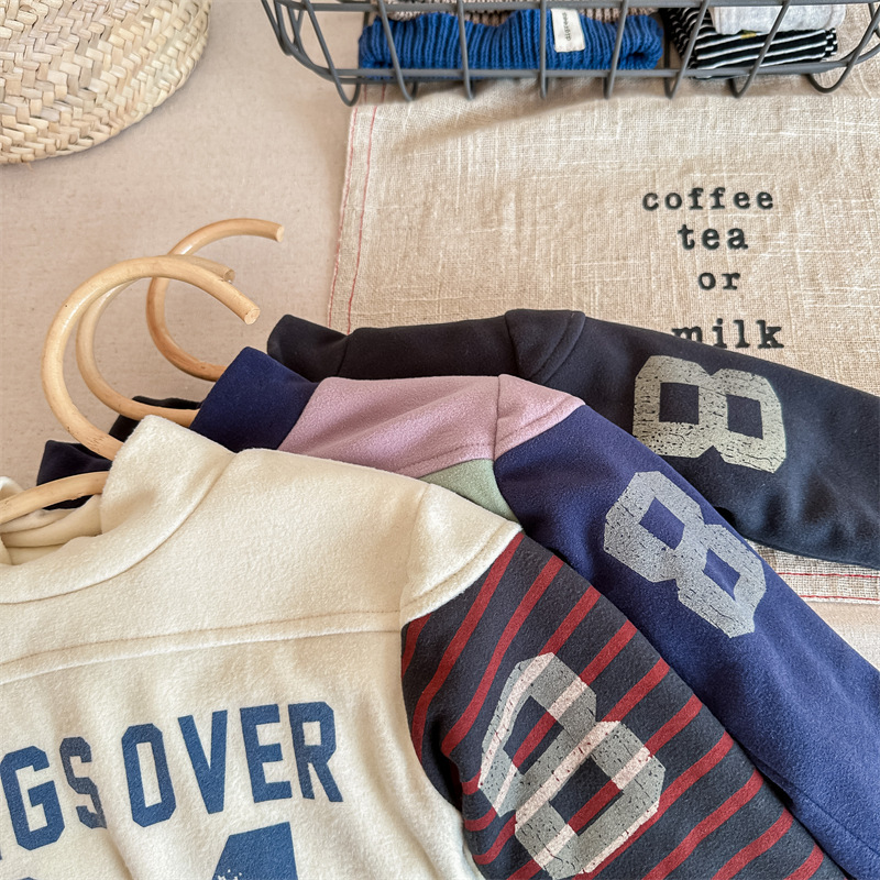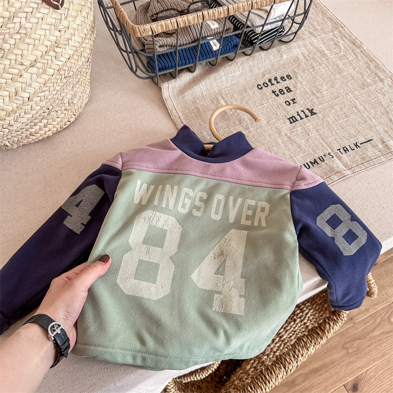 2023 가을과 겨울 어린이 기모 조끼 어린이를위한 한국어 컬러 매칭 문자 세미 하이 칼라 따뜻한 바닥 셔츠 재킷 조수
