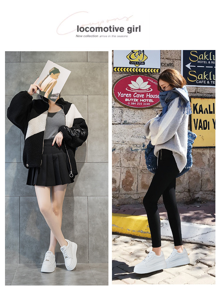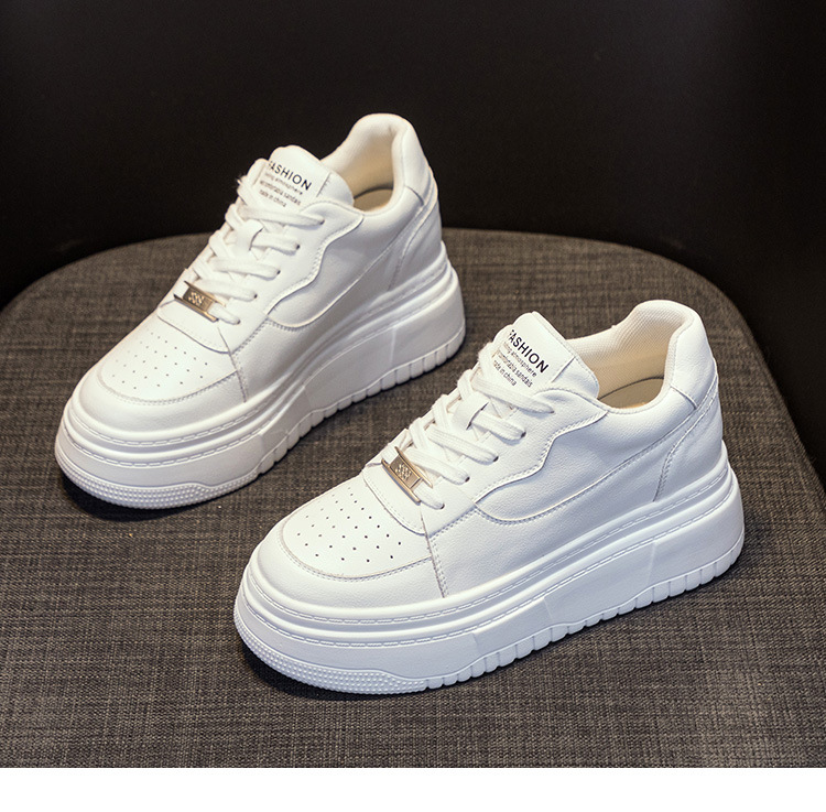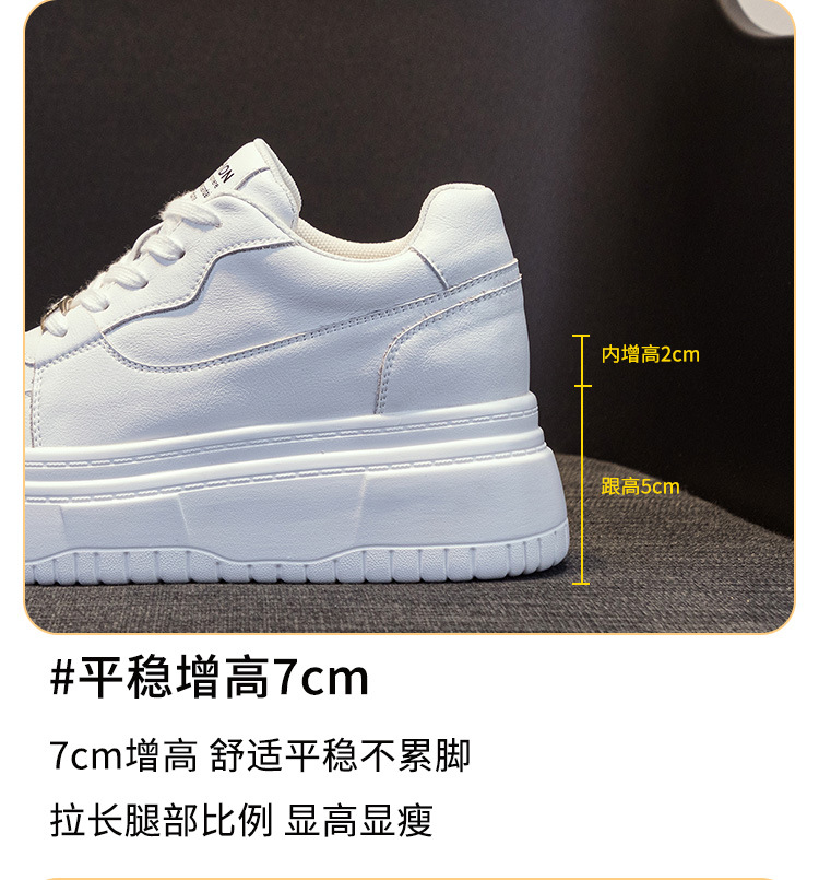 가죽 라운드 헤드 캐주얼 화이트 슈즈 7cm 두꺼운 밑창 스포츠 캐주얼 여성 신발 32-40 야드 통기성 로우탑 스몰 사이즈 여성스토어 가기