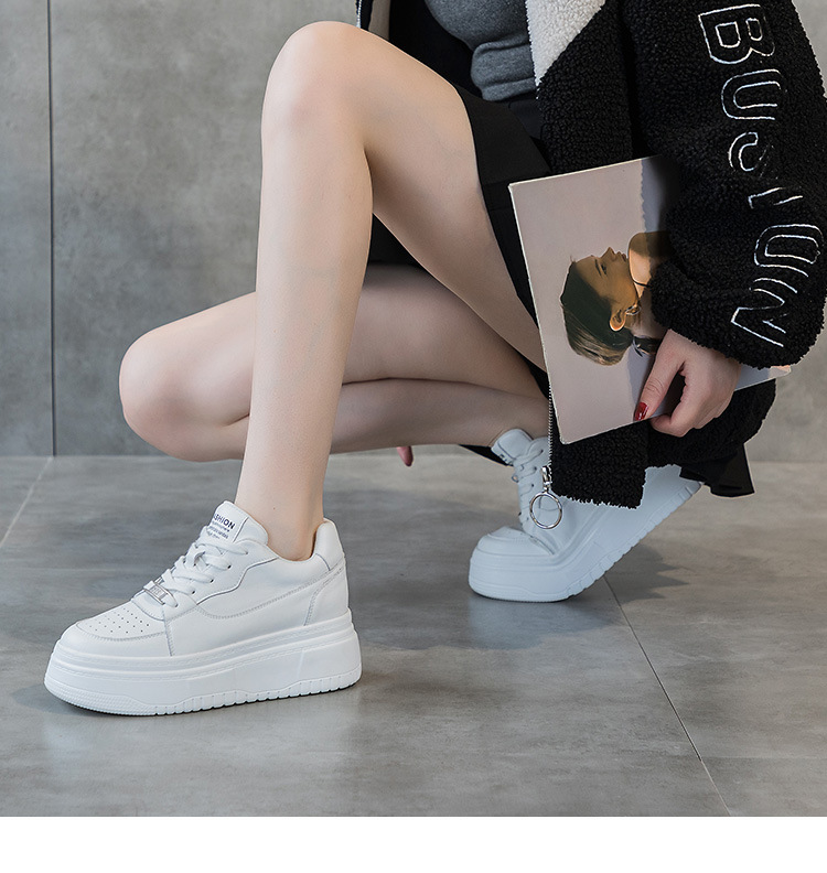가죽 라운드 헤드 캐주얼 화이트 슈즈 7cm 두꺼운 밑창 스포츠 캐주얼 여성 신발 32-40 야드 통기성 로우탑 스몰 사이즈 여성