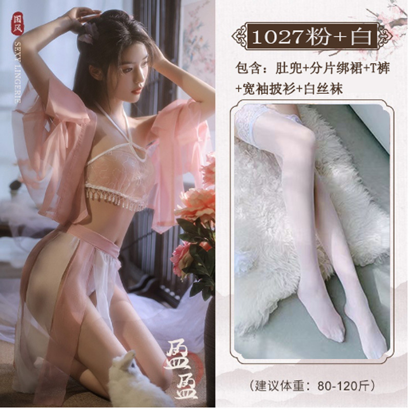 새로운 란제리 섹시 골동품 유니폼 유혹 진주 배꼽 보어 고대 잠옷 잉잉 쉬폰 Hanfu 세트