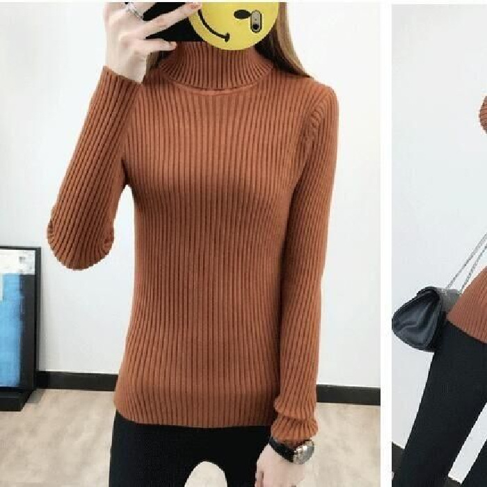 하이 칼라 코어 스핀 원사 2023 가을 새로운 옷깃 바디 타이트 긴팔 겨울 바닥 탑 여성용 스웨터스토어 가기