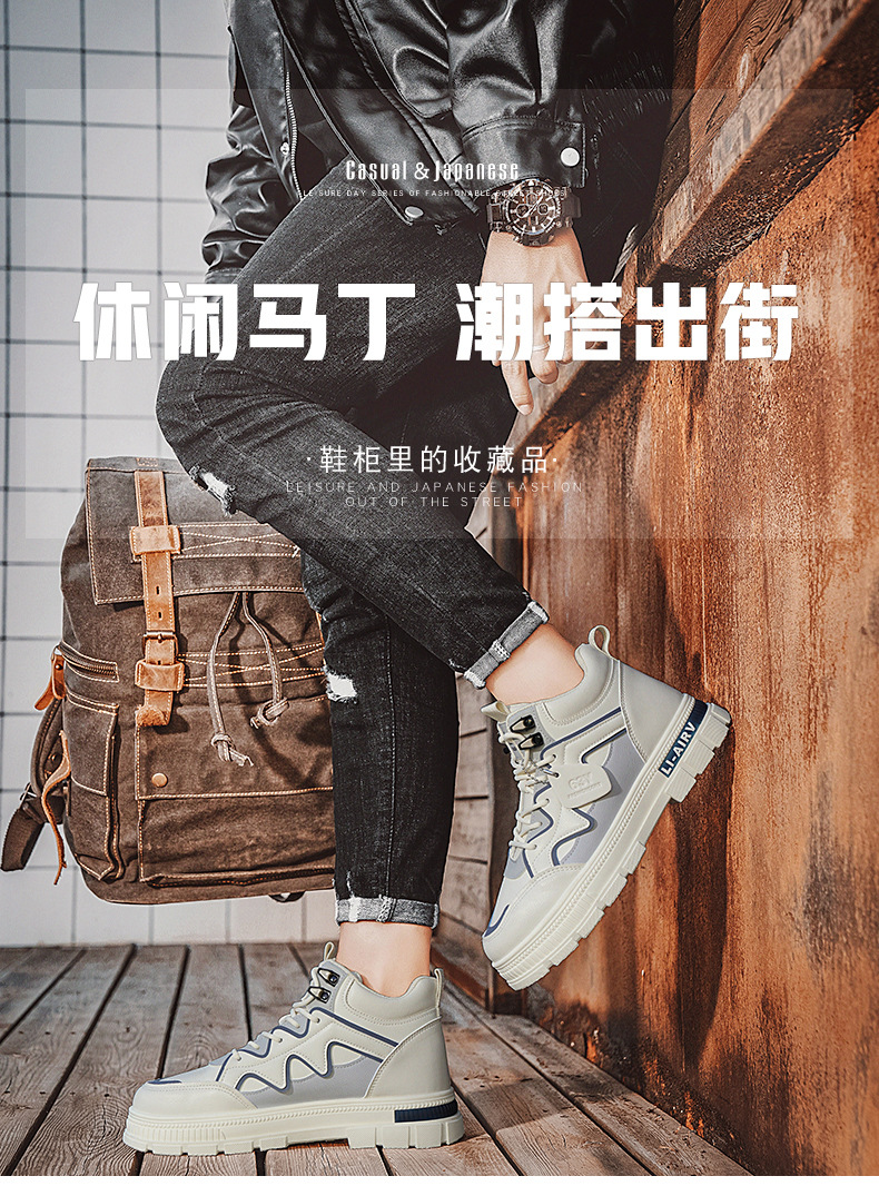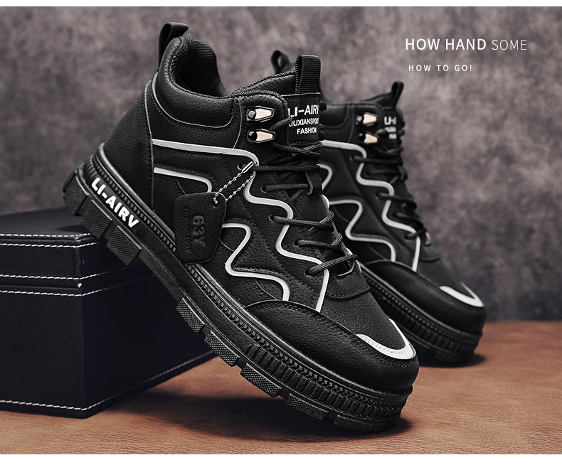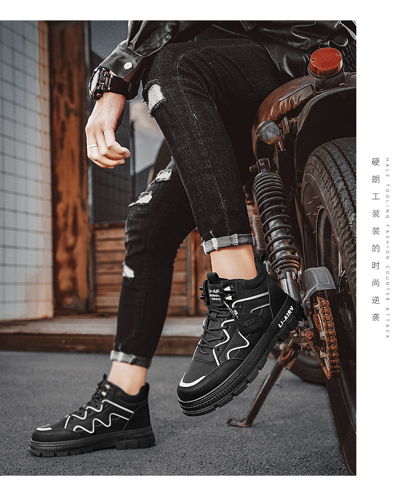 2023 겨울 새로운 하이탑 신발 마틴 가죽 부츠 패션 작업복 부츠 남성 캐주얼 오토바이 부츠 한국 스타일 남성용 노동 보호 신발스토어 가기