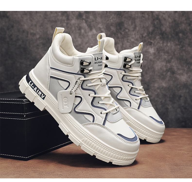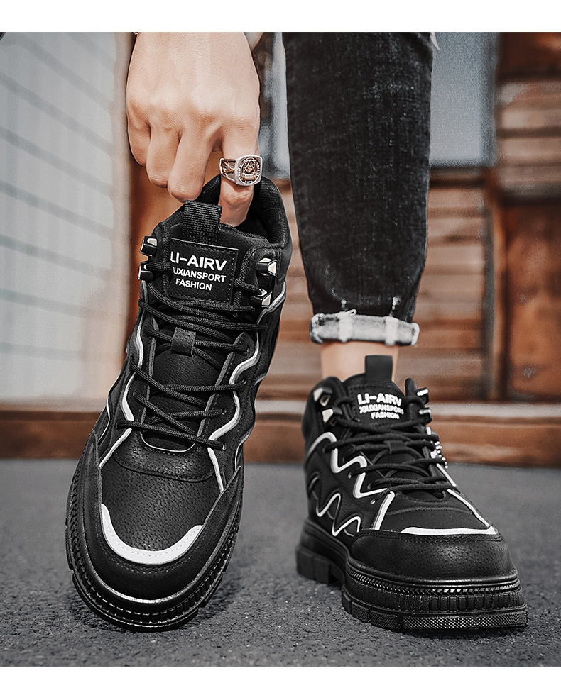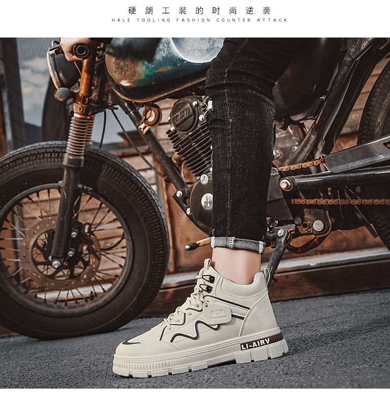 2023 겨울 새로운 하이탑 신발 마틴 가죽 부츠 패션 작업복 부츠 남성 캐주얼 오토바이 부츠 한국 스타일 남성용 노동 보호 신발
