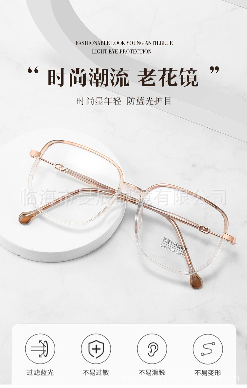 Douyin 같은 안티 블루 라이트 독서 안경 Starlight 미세 깜박임 중년 및 노인 거울 대형 프레임 슬리밍 남성 및 여성 패션 노인 거울