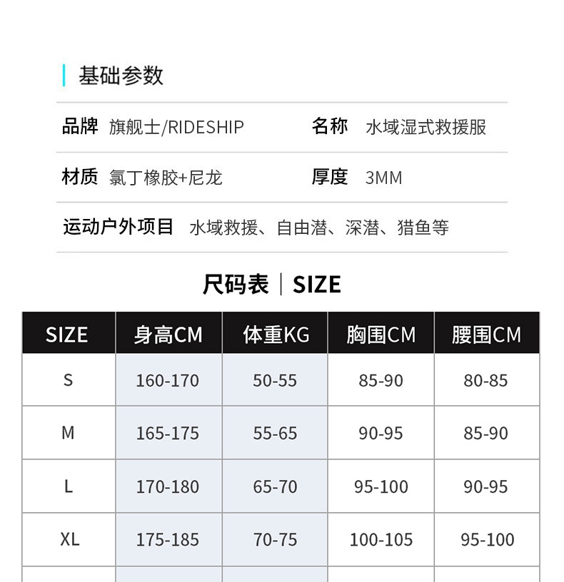 블루 스카이 구조 3mm 분할/결합 물 습식 다이빙 세트 구조 세트 세트 인명 구조 장비 홍수 구조스토어 가기