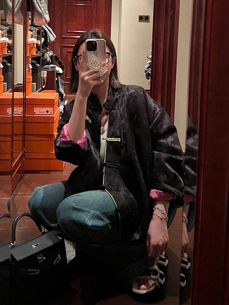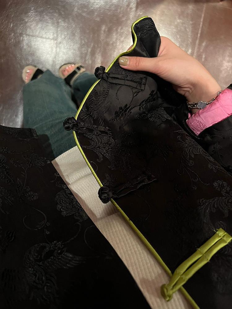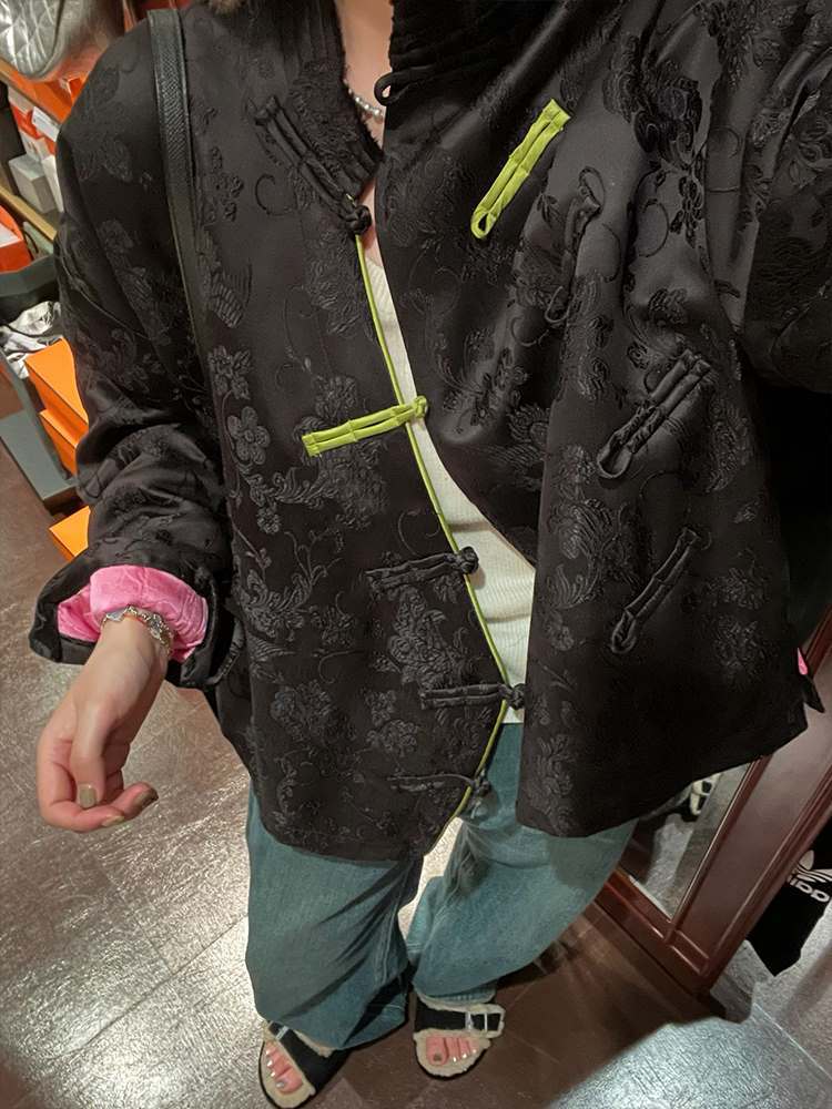 YT243932 새로운 중국 스타일 내셔널 스타일 독특한 하이 엔드 센스 슈퍼 잘 생긴 블랙 버튼 코트 2023 여성을위한 가을 폭발스토어 가기