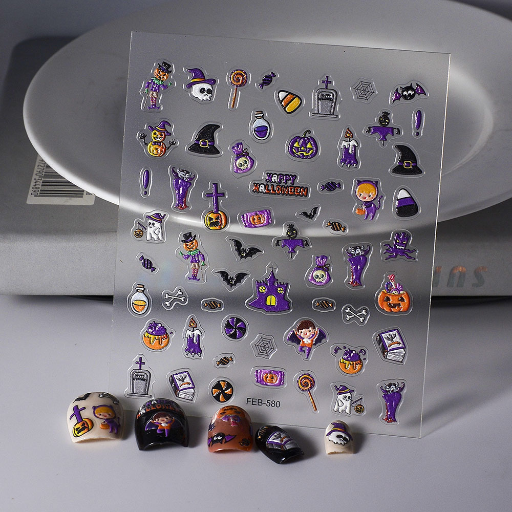 대외 무역 핫 할로윈 시리즈 네일 아트 스티커 양각 호박 박쥐 휴일 파티 네일 스티커 장식스토어 가기