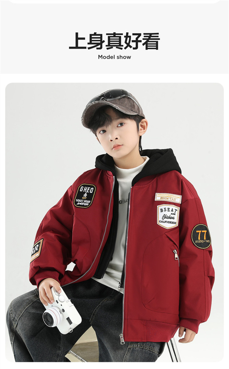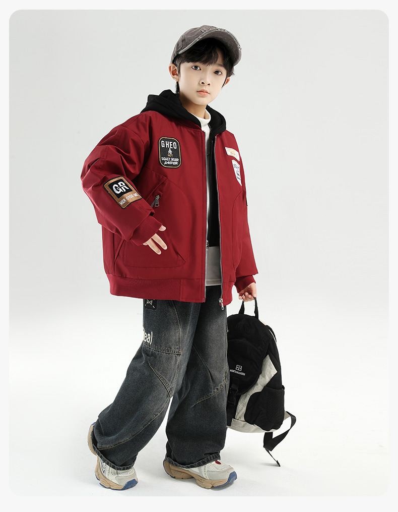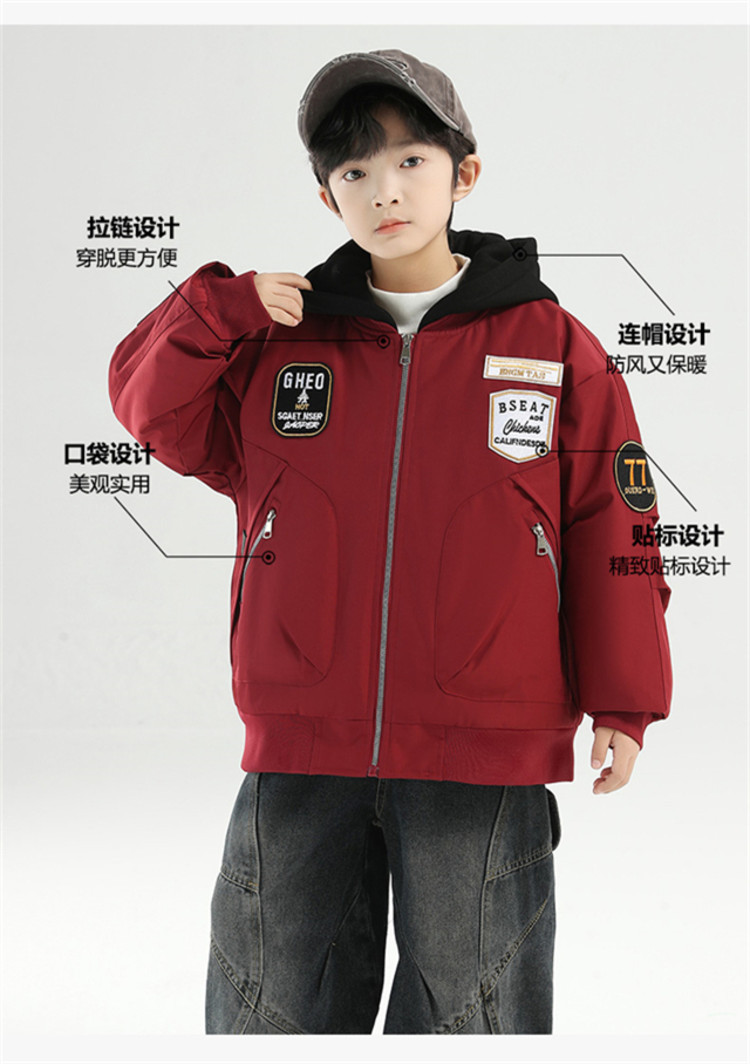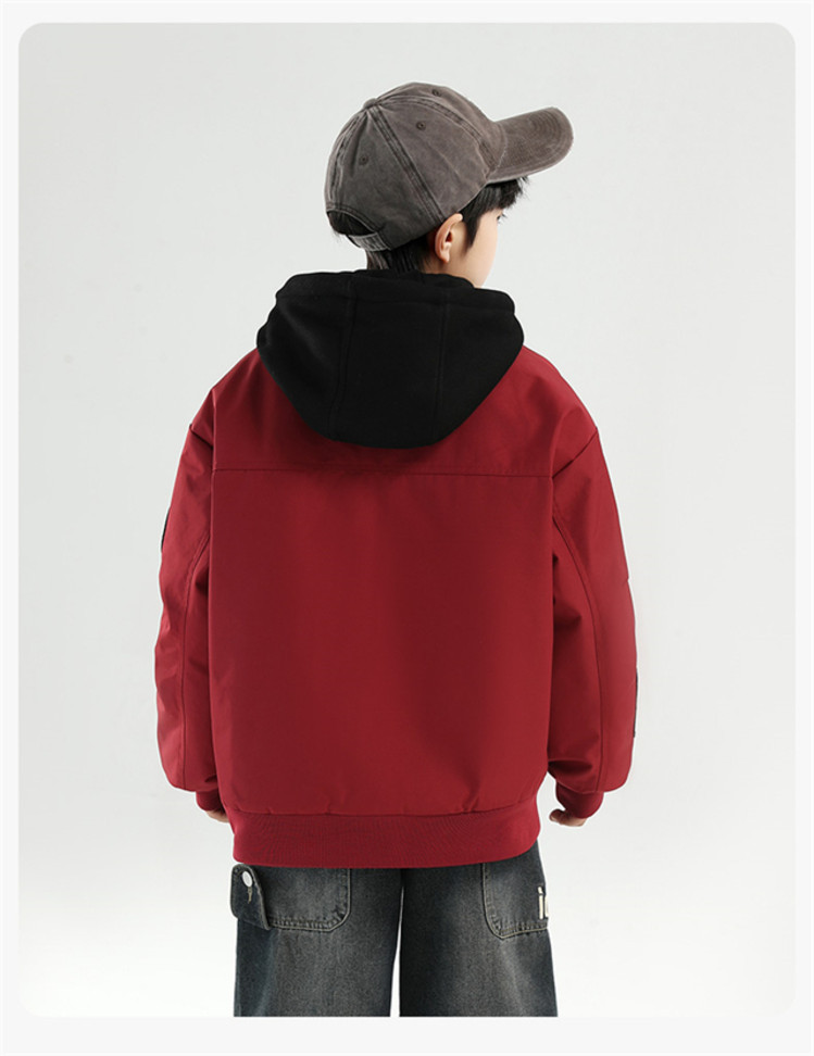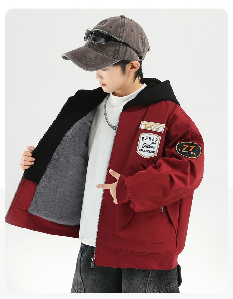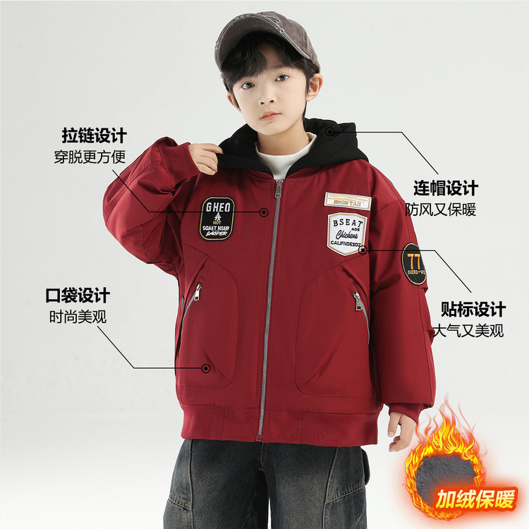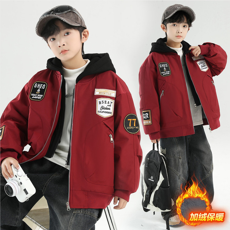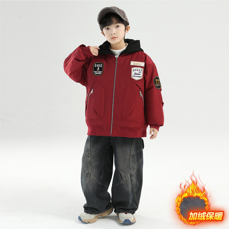 아동복 남아 겨울옷 플리스 레드 코트 2025 신상 중대형 아동용 해외배송 두꺼운 본명년 자켓