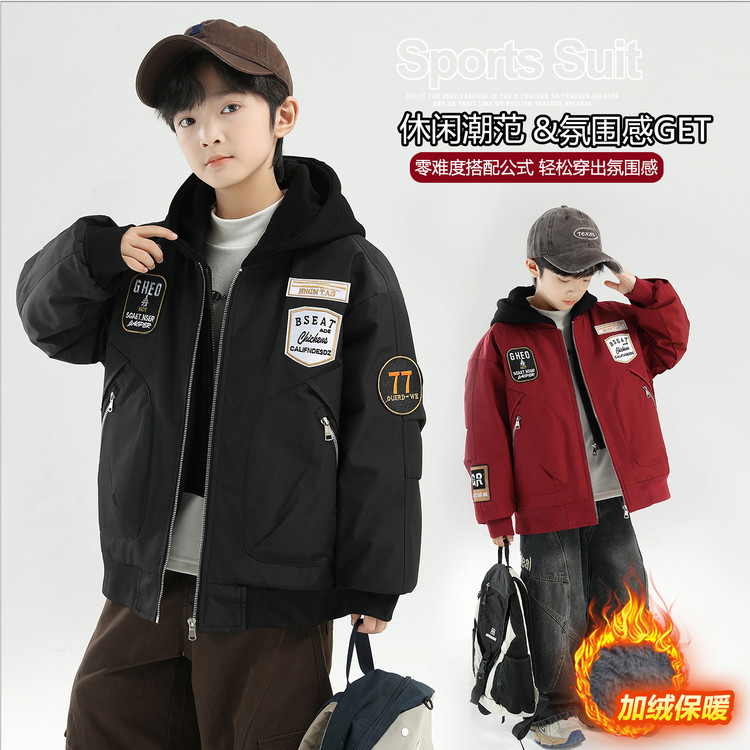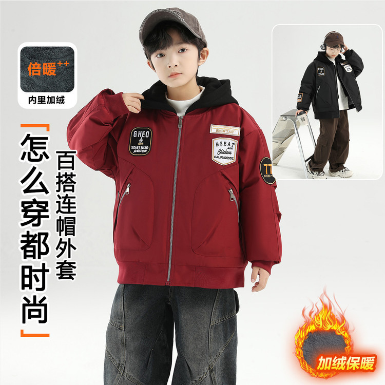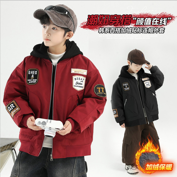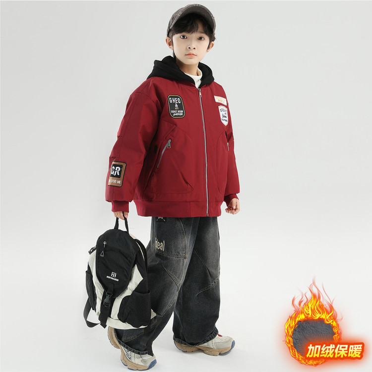 아동복 남아 겨울옷 플리스 레드 코트 2025 신상 중대형 아동용 해외배송 두꺼운 본명년 자켓스토어 가기