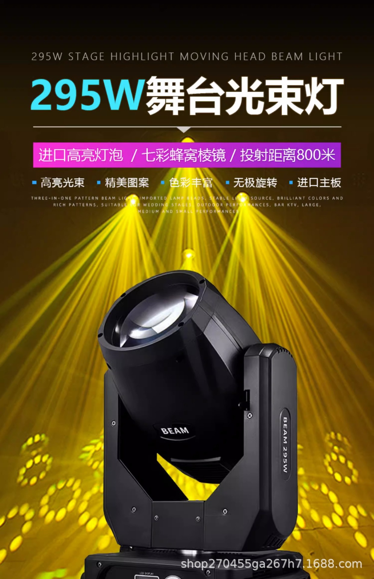 275W 빔 램프 295W 무대 조명 장비 패턴 회전 쉐이크 헤드 램프 결혼식 연회장 바 스포트라이트