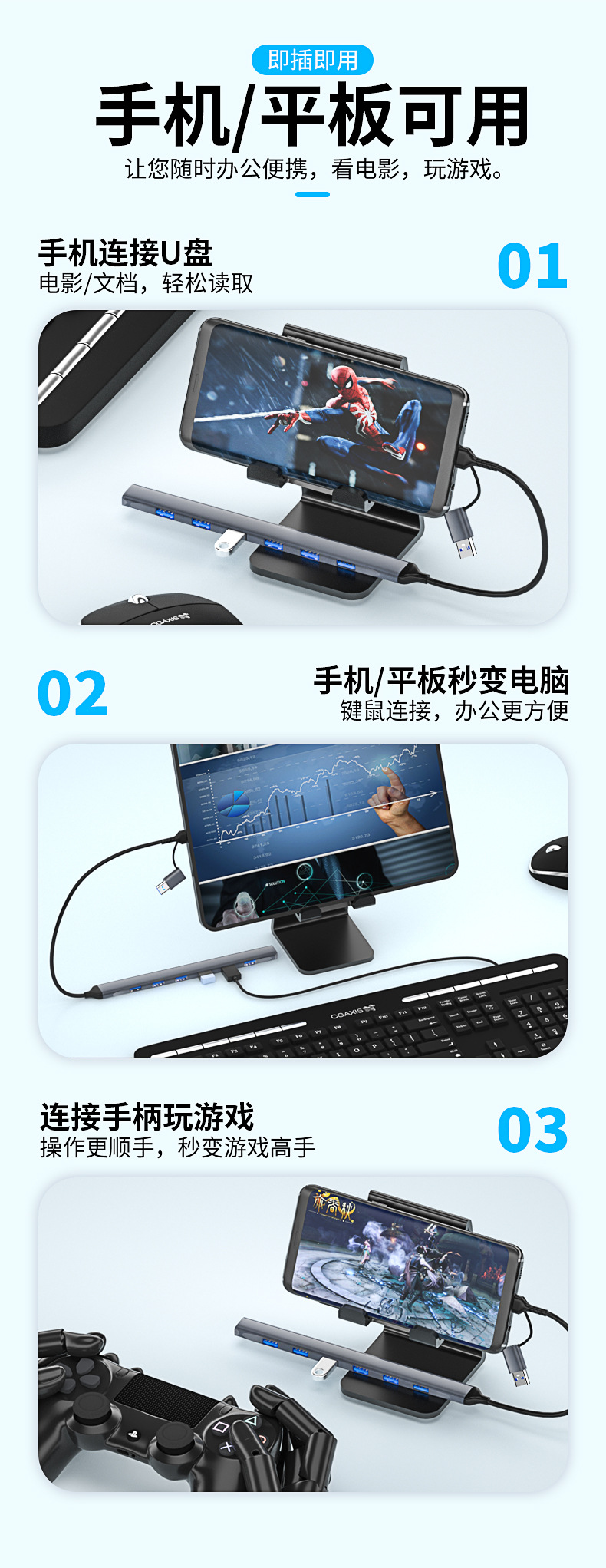 도킹 스테이션 세븐인원 다기능 허브 USB3.0 노트북 인터페이스 키보드 및 마우스 하드 디스크 U 디스크 확장기 허브스토어 가기