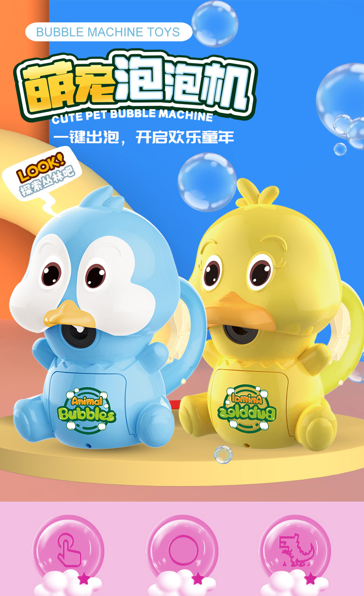 어린이 만화 오리 펭귄 휴대용 버블 건 자동 개틀링 버블 머신 어린이 온라인 빨간 장난감 선물스토어 가기