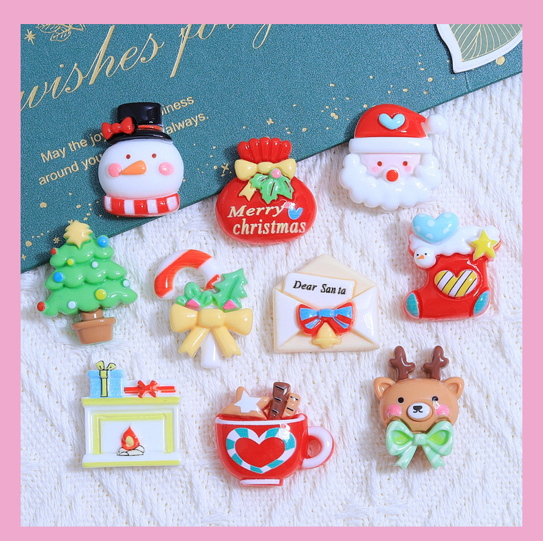 만화 크리스마스 선물 어린이 재미 수제 DIY 크림 접착제 휴대 전화 케이스 머리 장식 머리핀 보석 수지 액세서리 도매스토어 가기