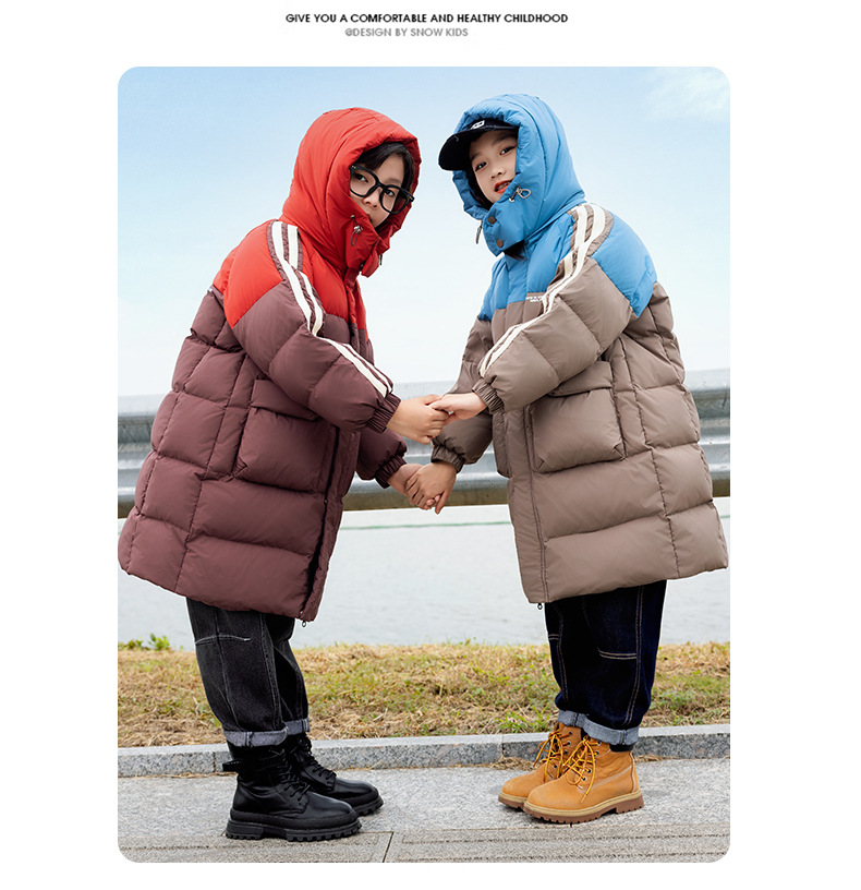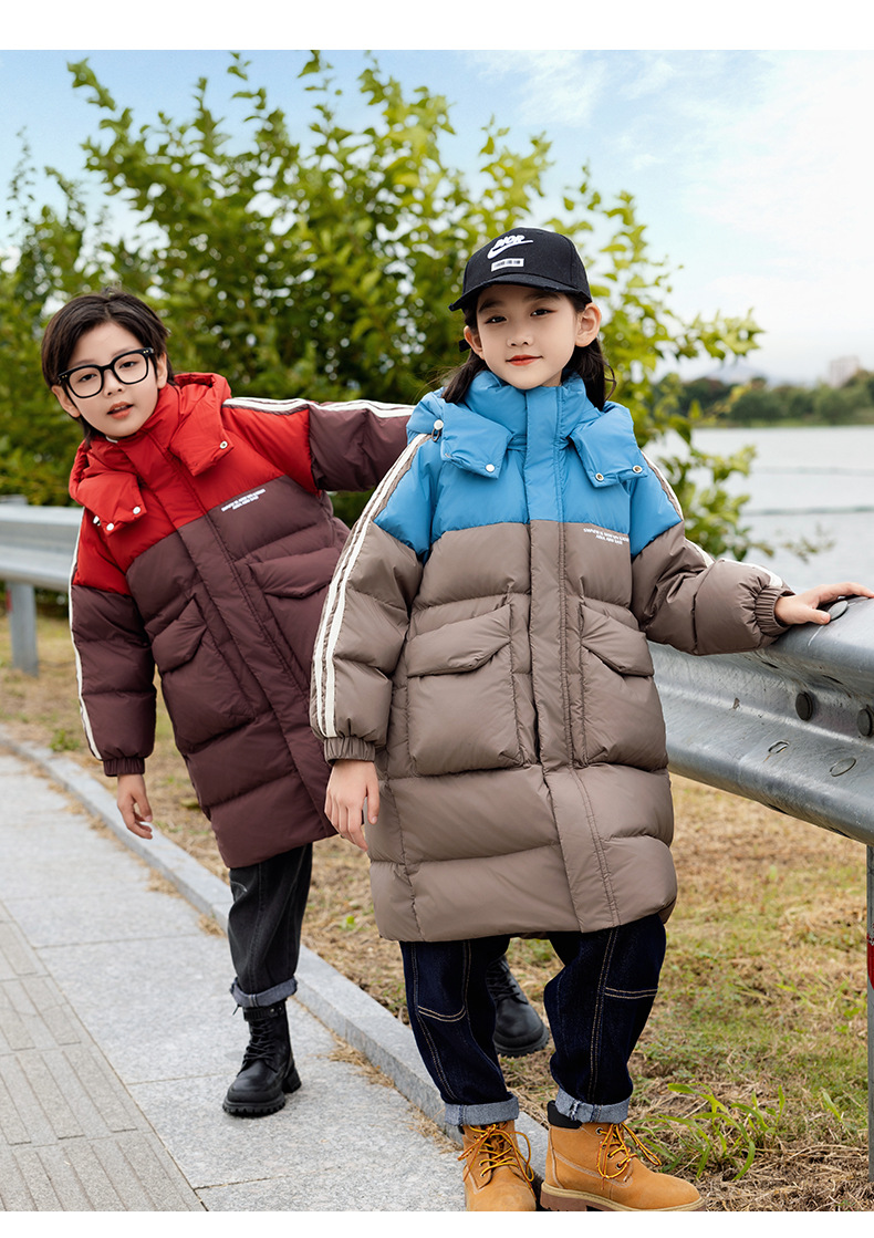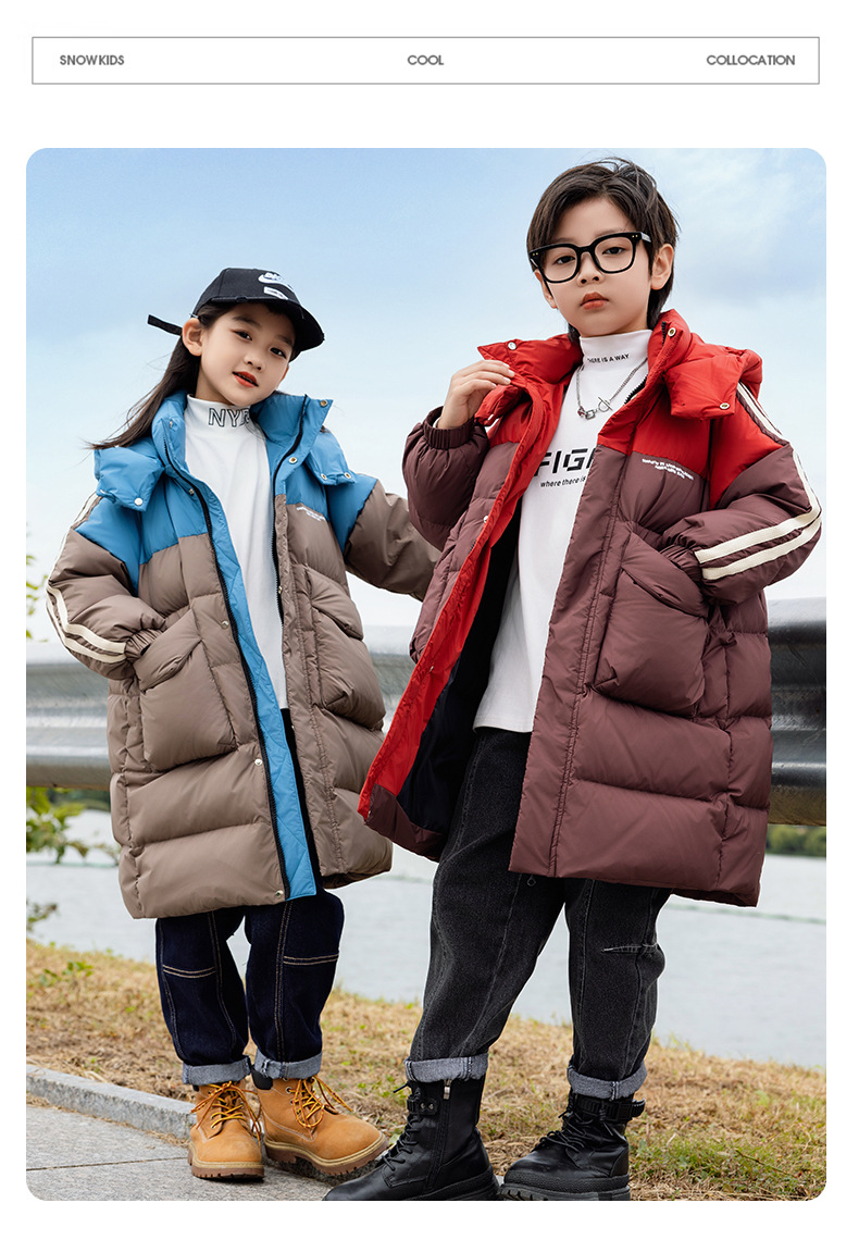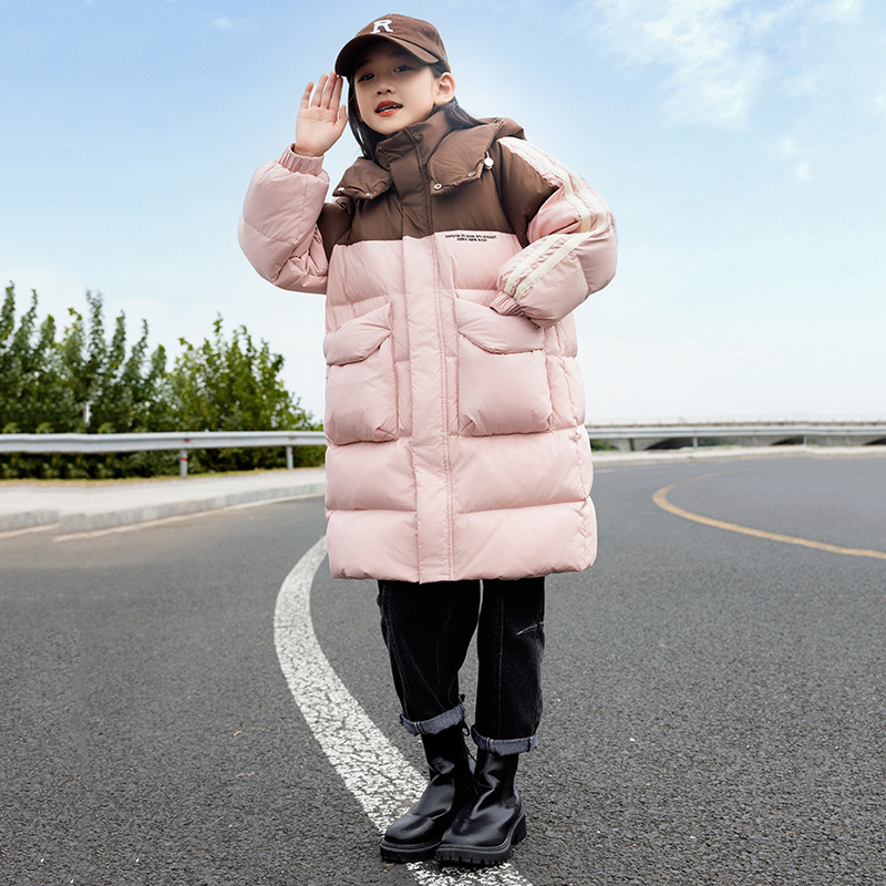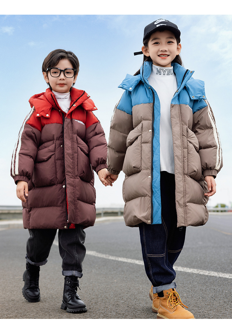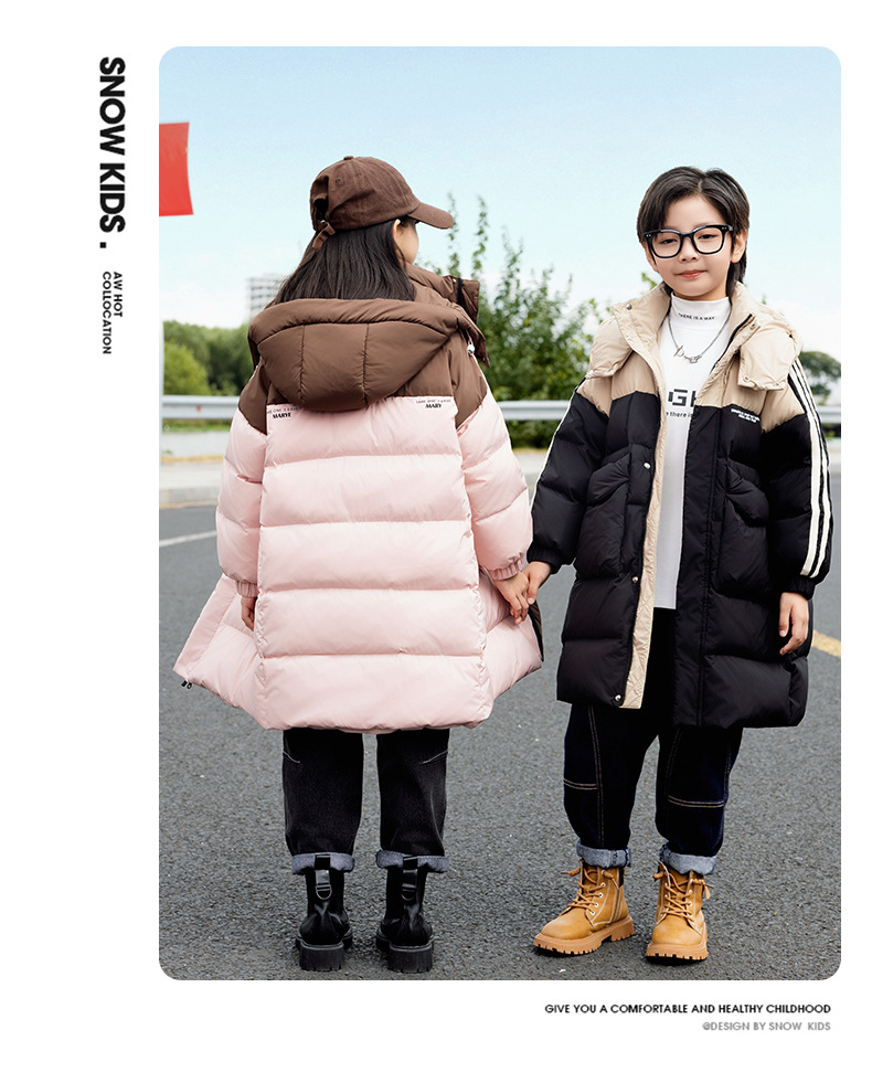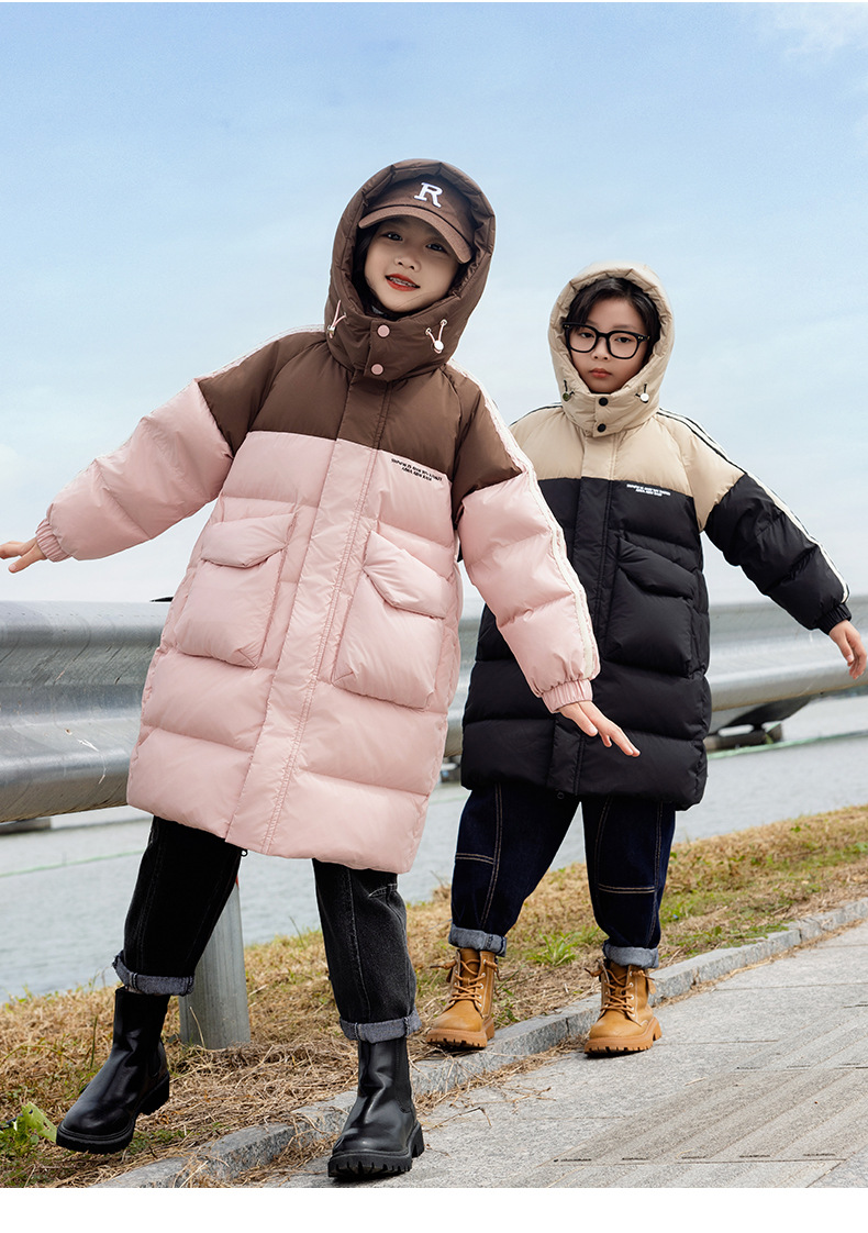 2025년 신상 아동용 여아 다운 재킷 남아용 롱 스타일 한국판 두꺼운 루즈핏 아동복 중대형 아동용 패셔너블 겨울옷스토어 가기