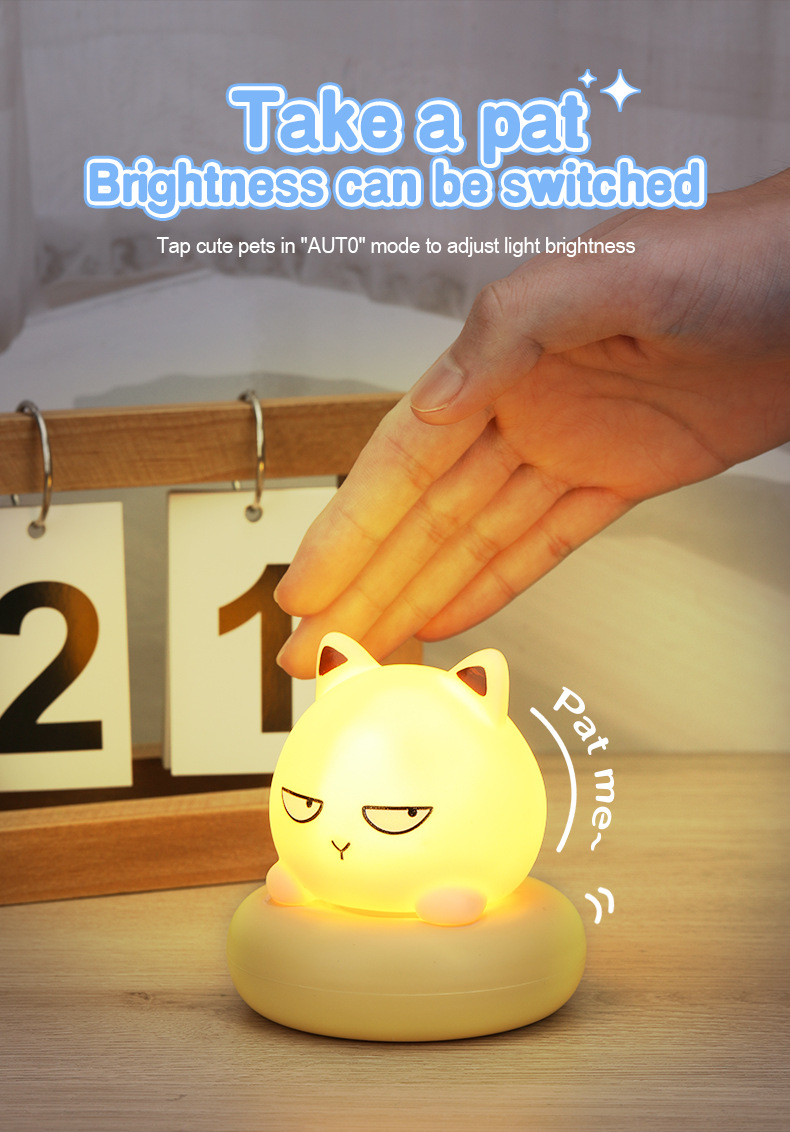 크로스 보더 귀여운 애완 동물 충전 침대 옆 램프 침실 램프 인덕션 팻 램프 휴대용 장식품 야간 조명 실리콘 팝 램프스토어 가기