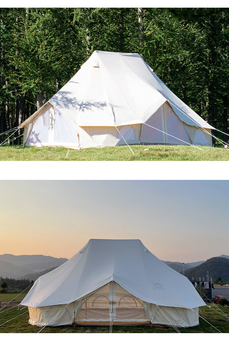 임페리얼 벨 더블 탑 텐트 4*6 m 야외 캠핑 면 캔버스 난연 자외선 차단제 방수 두꺼운 캠프 텐트