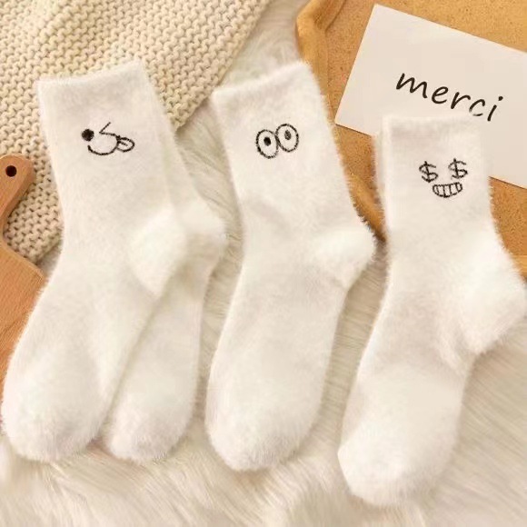 밍크 벨벳 겨울 양말 여자의 가을과 겨울 기모 두꺼운 따뜻한 흰색 모피 자수 표현 가방 더미 양말스토어 가기