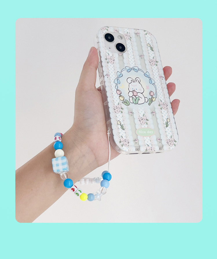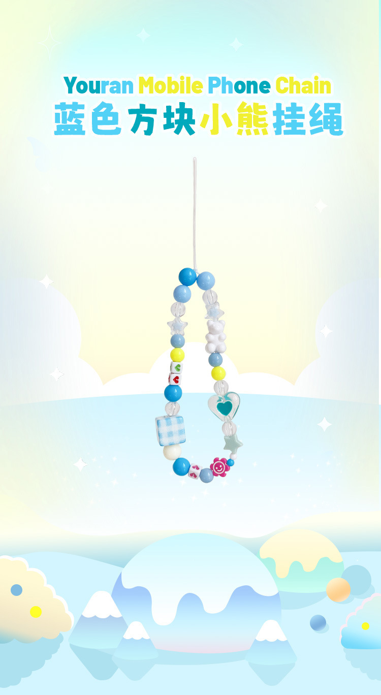 새로운 블루 큐브 곰 휴대 전화 교수형 체인 마카롱 수제 페르시 범용 휴대용 디지털 가방 쥬얼리스토어 가기