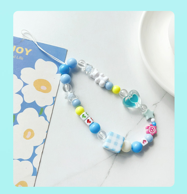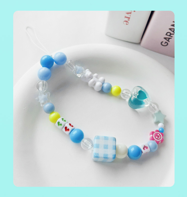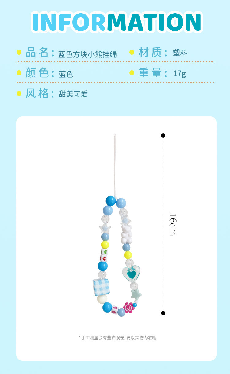 새로운 블루 큐브 곰 휴대 전화 교수형 체인 마카롱 수제 페르시 범용 휴대용 디지털 가방 쥬얼리