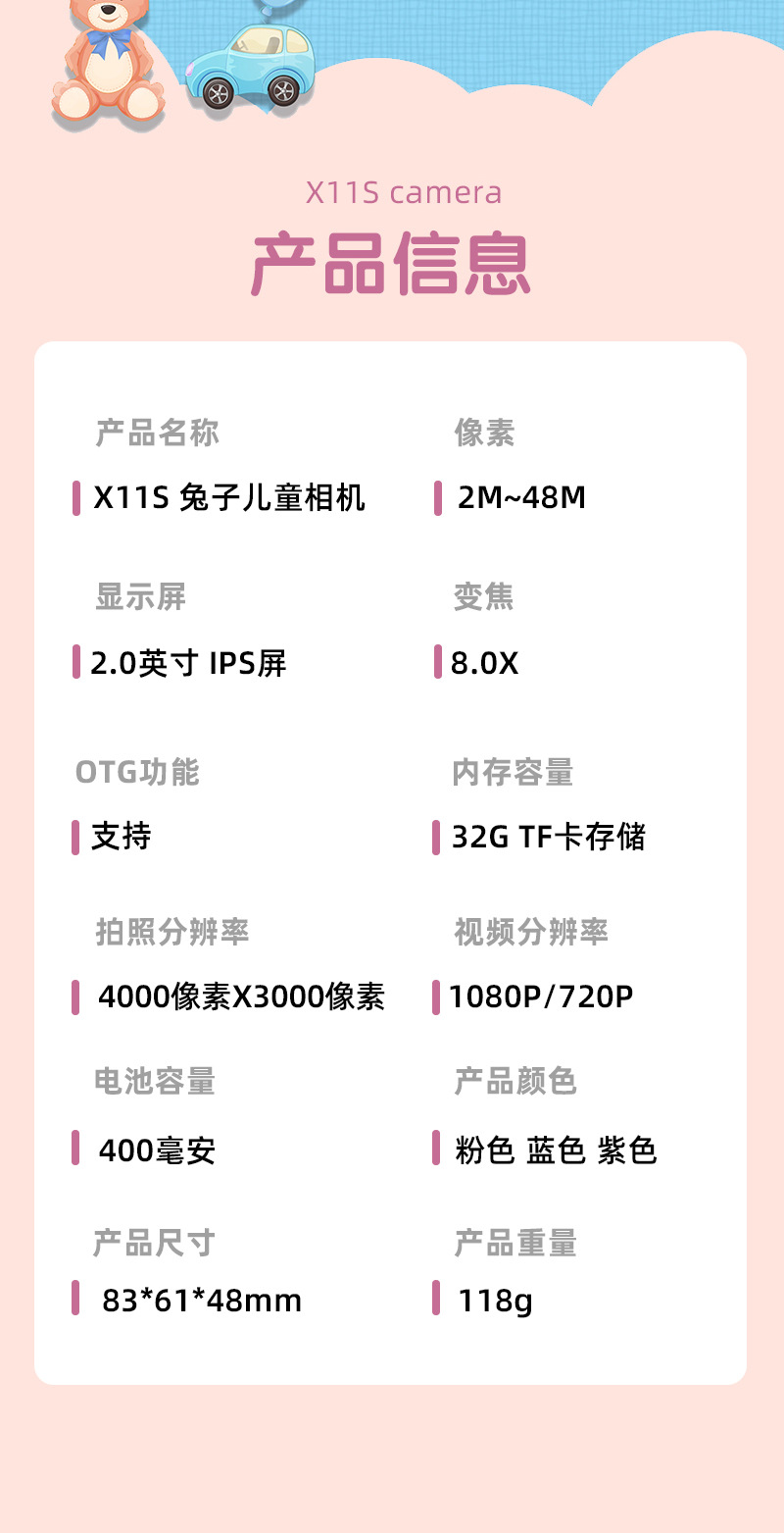 X5S 어린이 카메라 HD X11s 만화 비디오 소형 SLR 듀얼 카메라 미니 장난감 카메라 선물