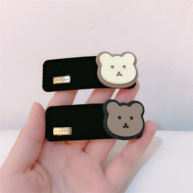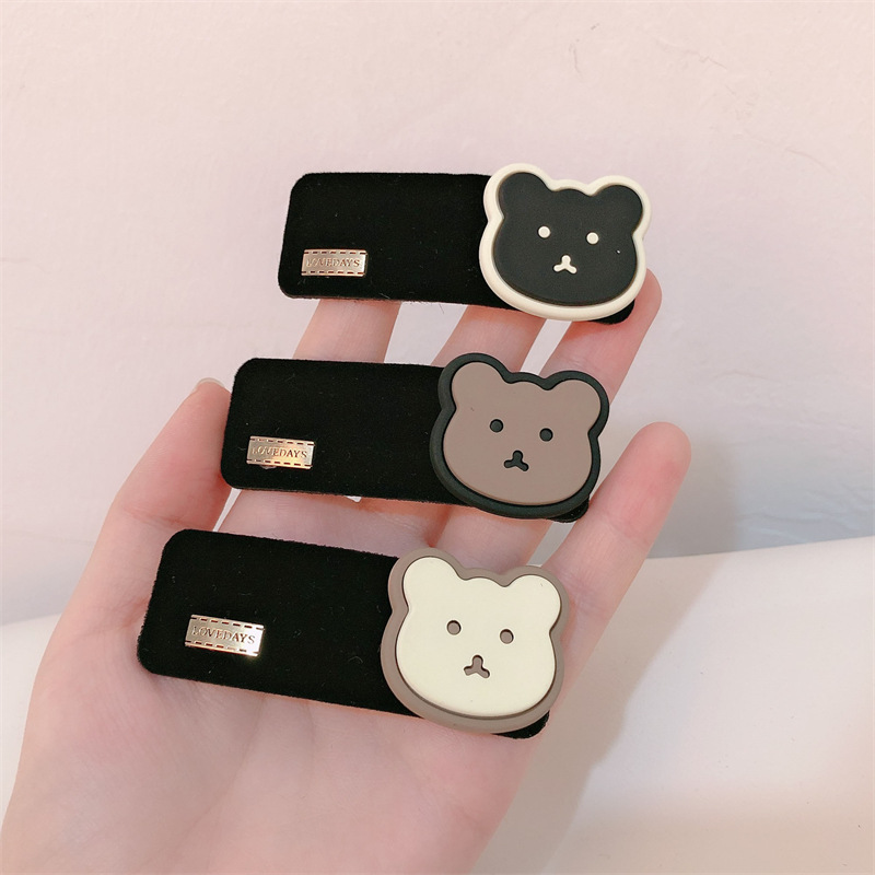 간단한 다크 브라운 스타일 곰 헤어 클립 모자 귀여운 소녀의 BB 클립 기질 깨진 머리 클립 고급 사이드 클립스토어 가기