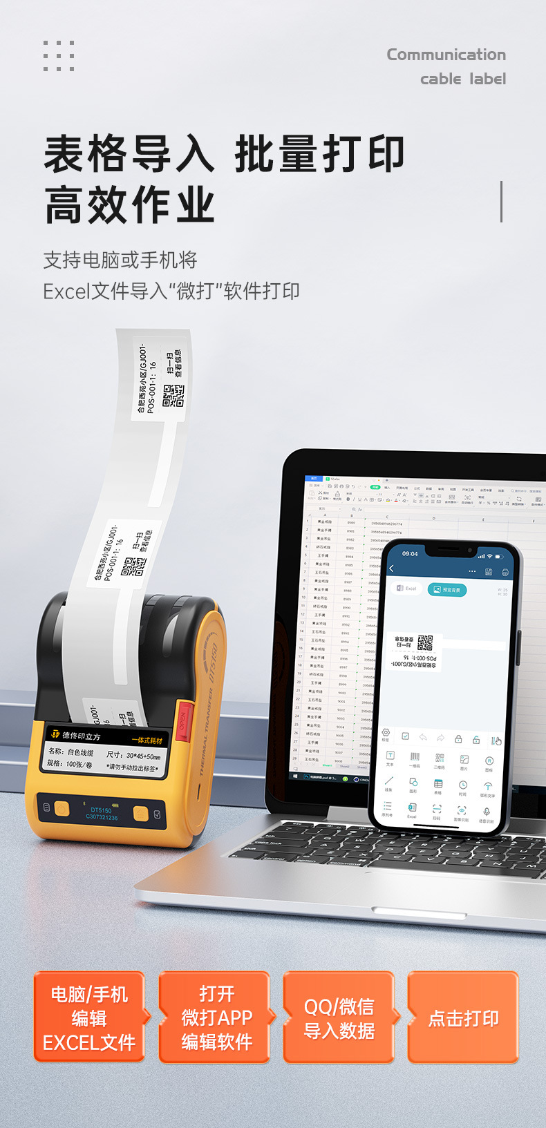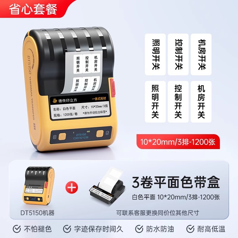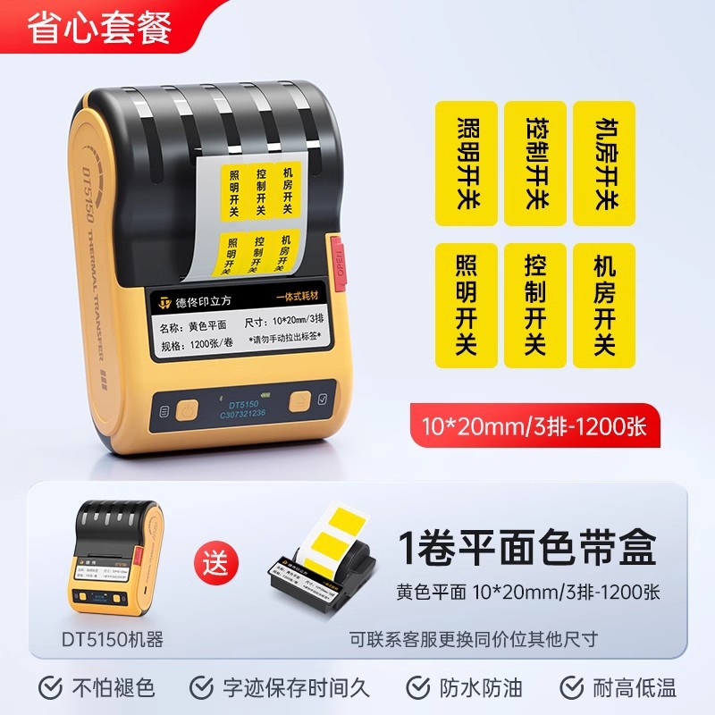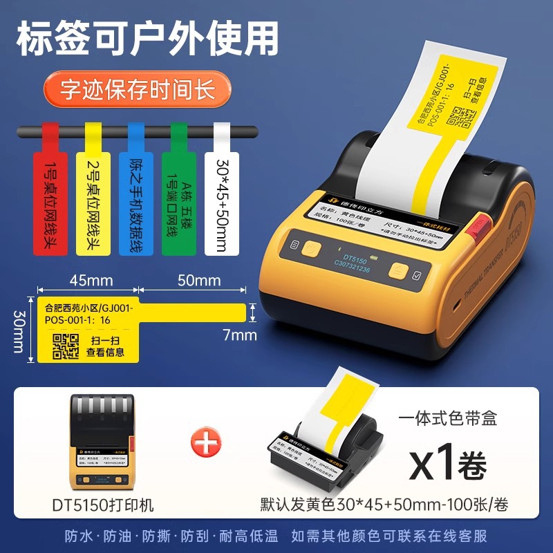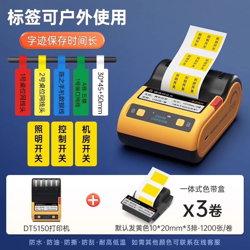 De Tong DT5150 열전사 라벨 프린터 통신실 케이블 네트워크 케이블 라벨기 핸드 헬드 소형 블루투스스토어 가기