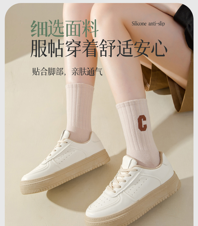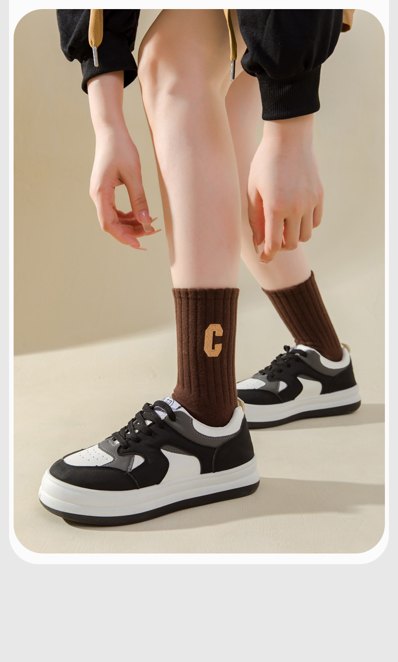 양말 여성의 봄과 가을 중간 튜브 양말 순면 탈취제 C 문자 자수 가을과 겨울 스타킹 학생 하이 튜브 스포츠 양말