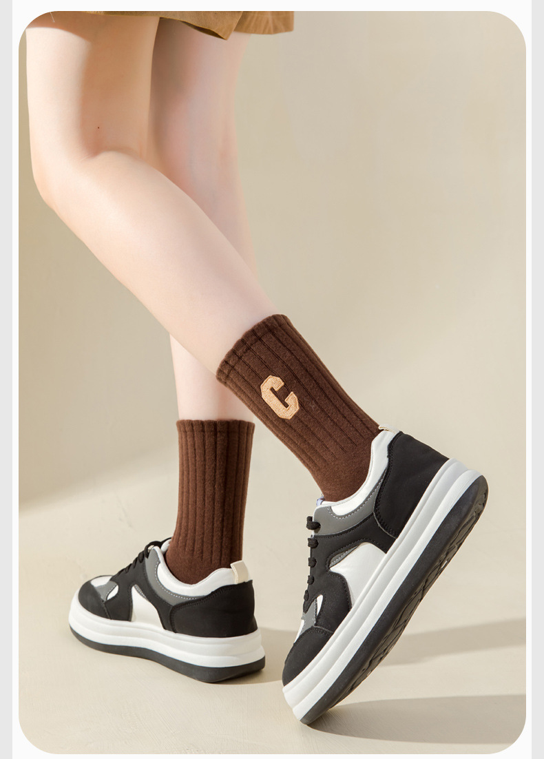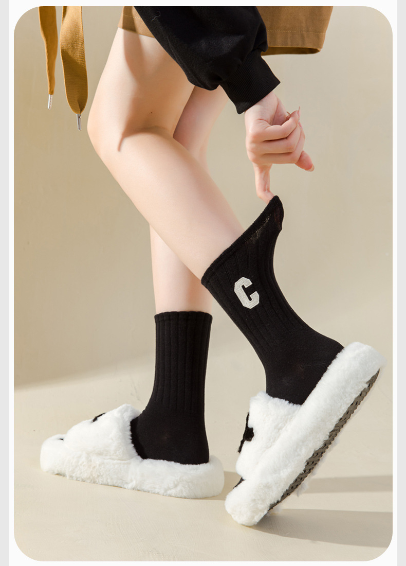 양말 여성의 봄과 가을 중간 튜브 양말 순면 탈취제 C 문자 자수 가을과 겨울 스타킹 학생 하이 튜브 스포츠 양말스토어 가기