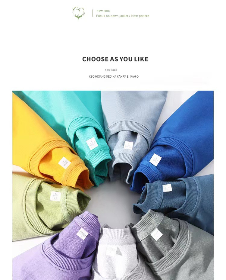 봄과 가을 단색 라운드 넥 테리 스웨터 남녀 인쇄 바지 긴 소매 풀오버 스웨터 도매 260 g스토어 가기