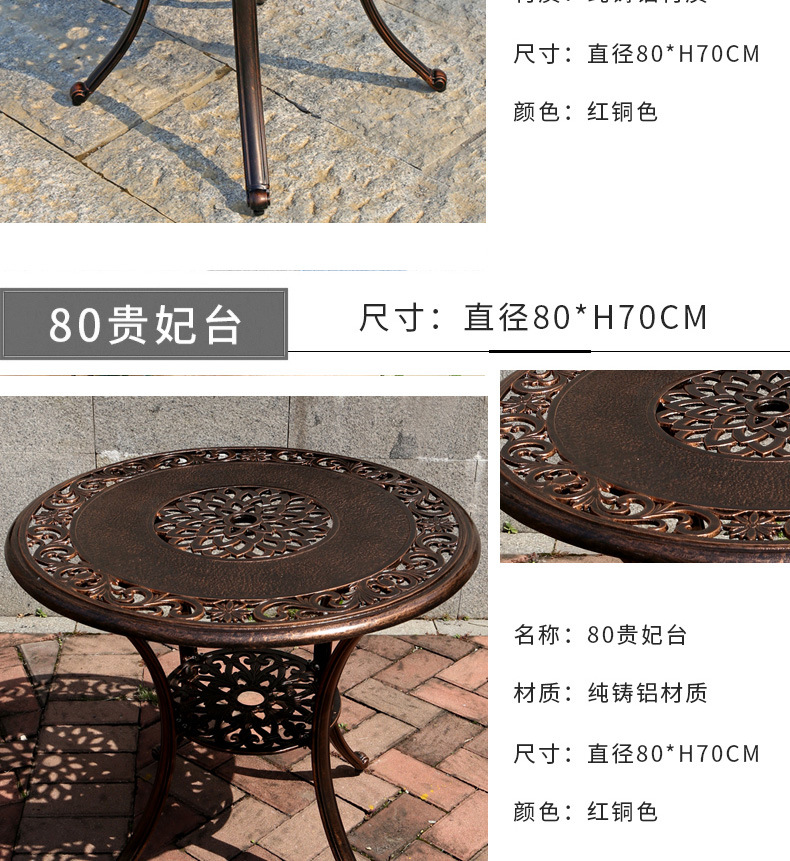 야외 주조 알루미늄 테이블과 의자, 단일 테이블, 야외 안뜰 정원 레저 철 식탁, 방수 및 자외선 차단제 발코니 작은 커피 테이블스토어 가기