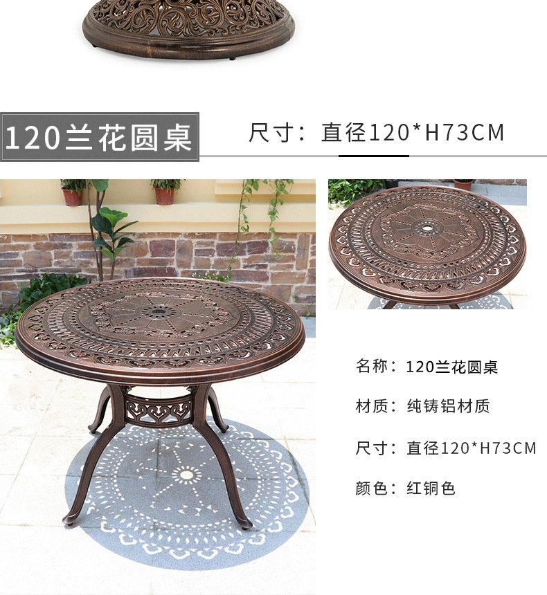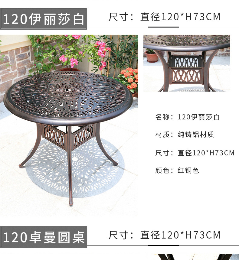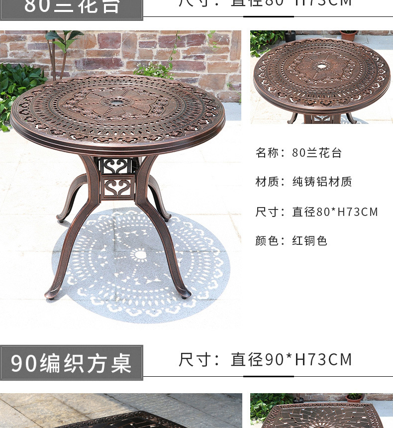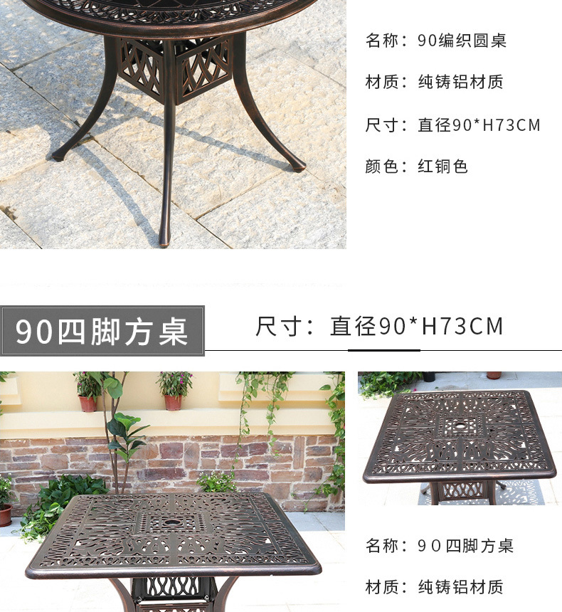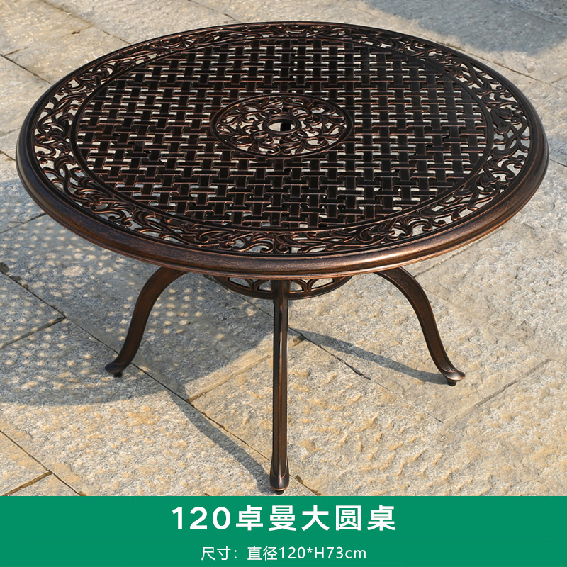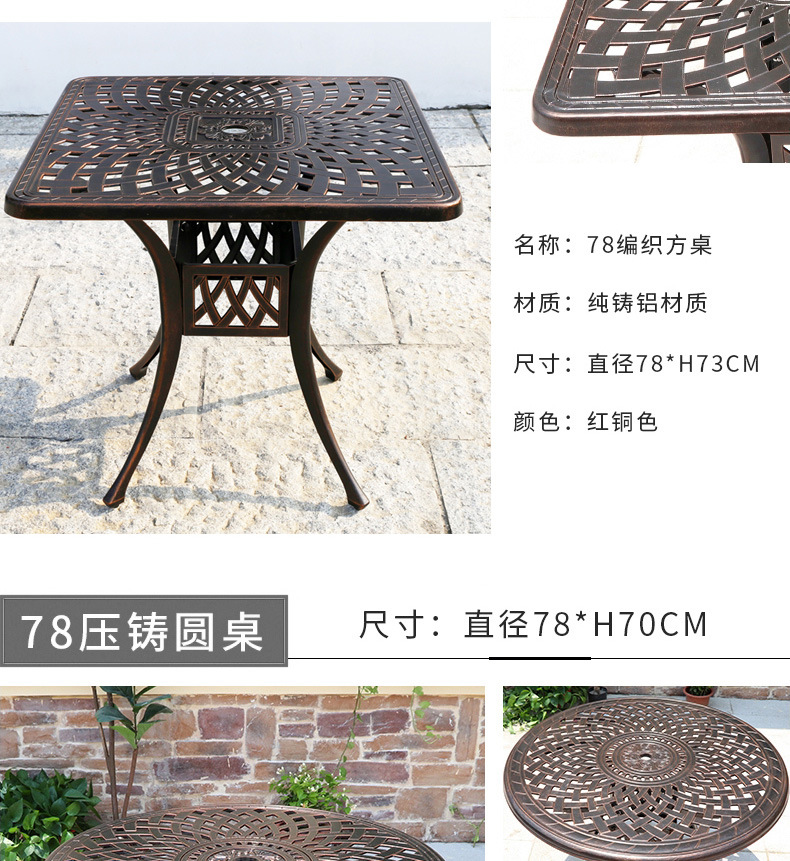 야외 주조 알루미늄 테이블과 의자, 단일 테이블, 야외 안뜰 정원 레저 철 식탁, 방수 및 자외선 차단제 발코니 작은 커피 테이블