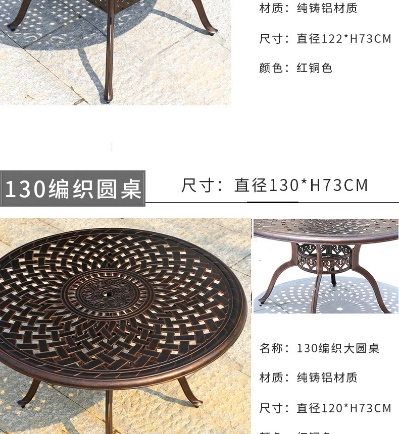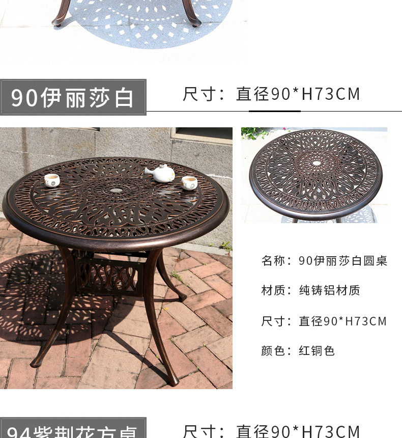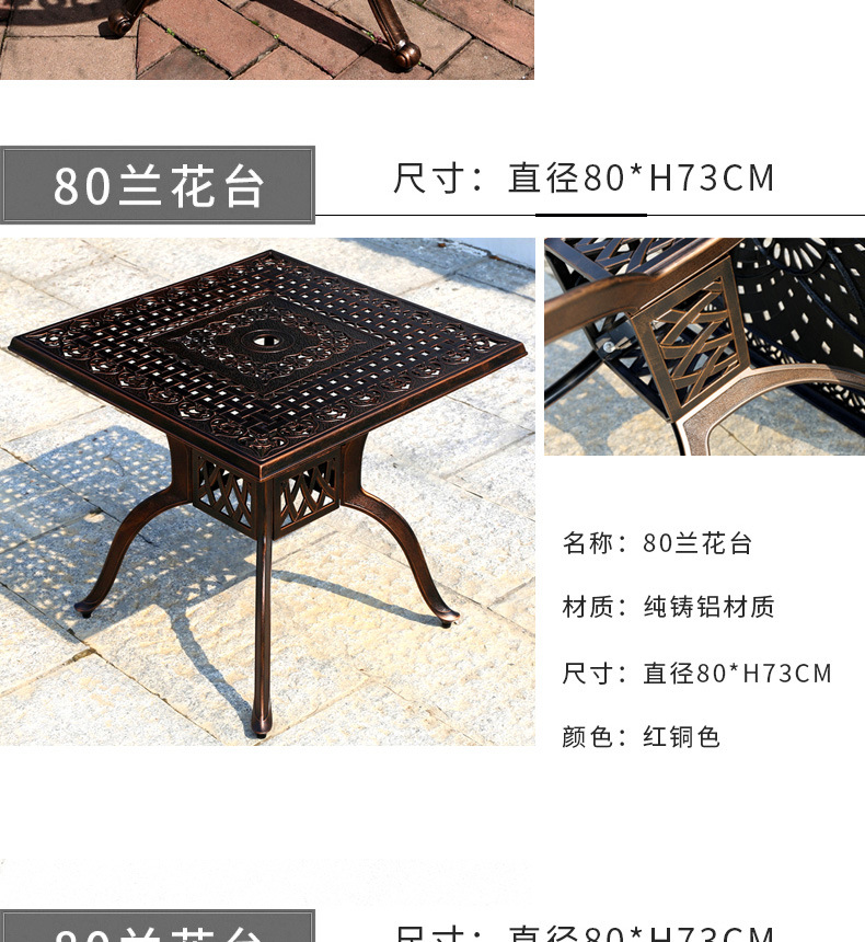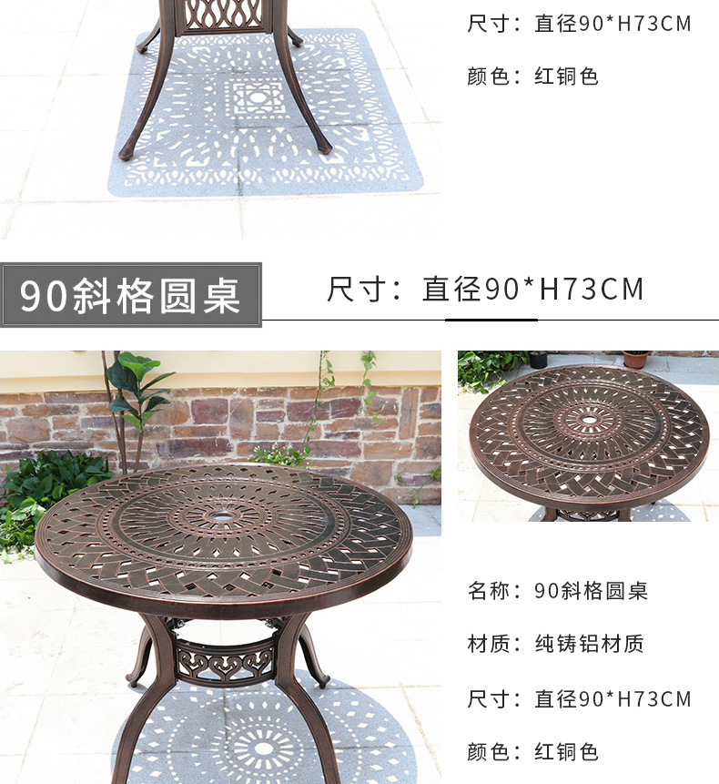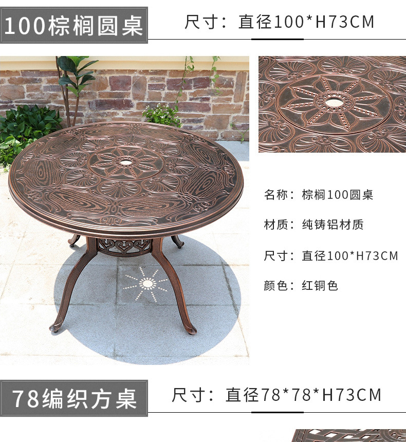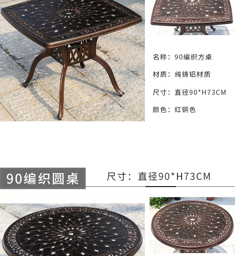 야외 주조 알루미늄 테이블과 의자, 단일 테이블, 야외 안뜰 정원 레저 철 식탁, 방수 및 자외선 차단제 발코니 작은 커피 테이블