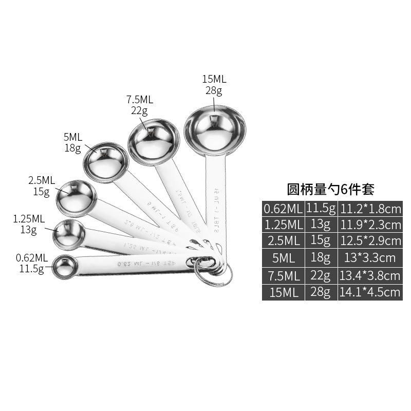 • 직선 가장자리 둥근 손잡이 측정 숟가락 6 피스 세트