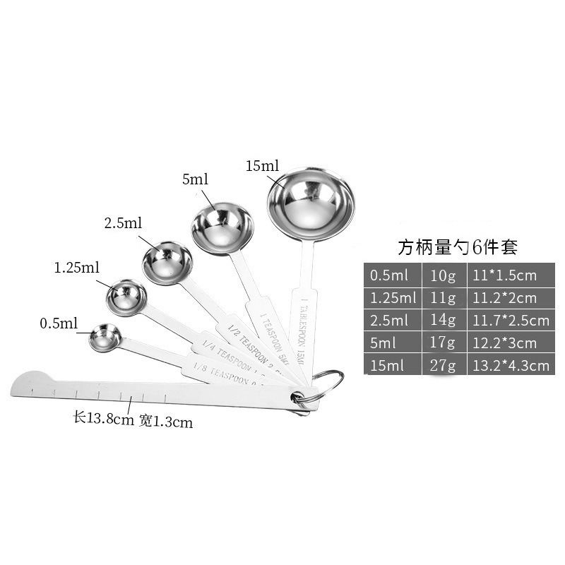• 스퀘어 핸들 측정 스푼 6 피스 세트