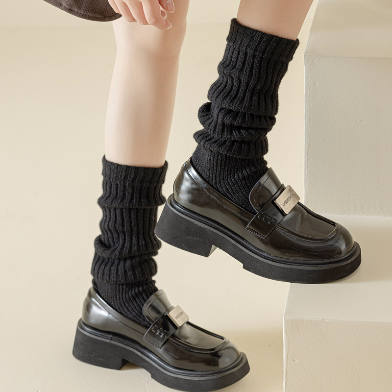 발 양말 세트 여성의 가을과 겨울 두꺼운 니트 다리 커버 두꺼운 봉제 미디엄 롱 jk 송아지 양말 파일 부츠 커버